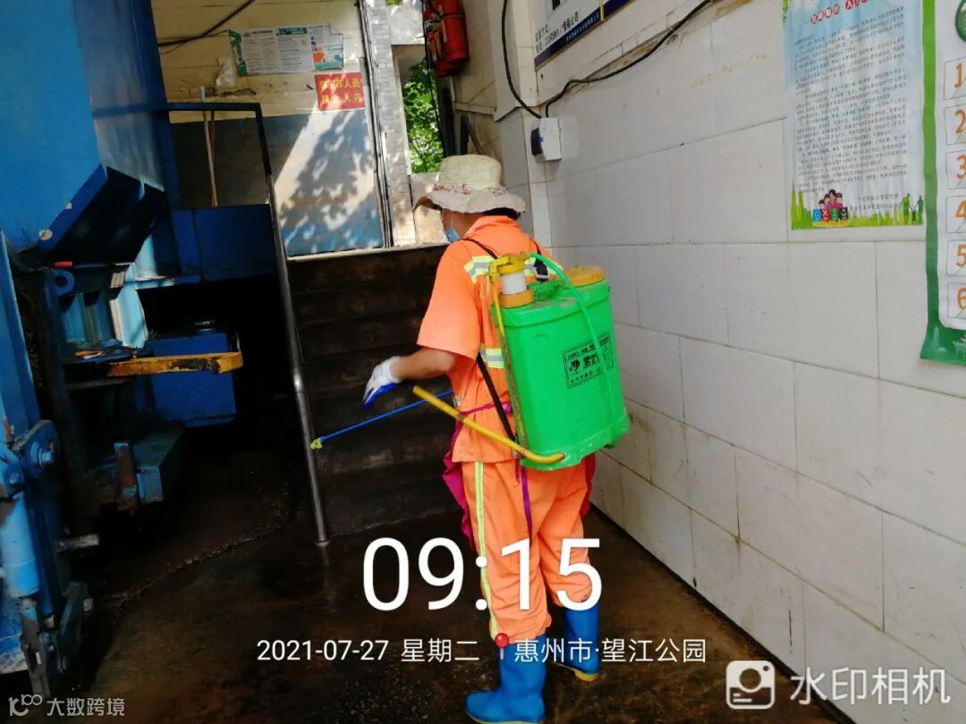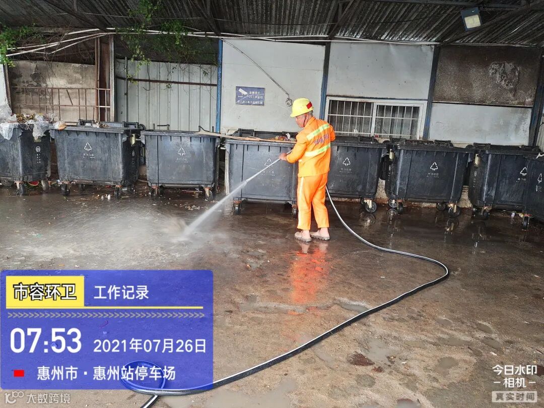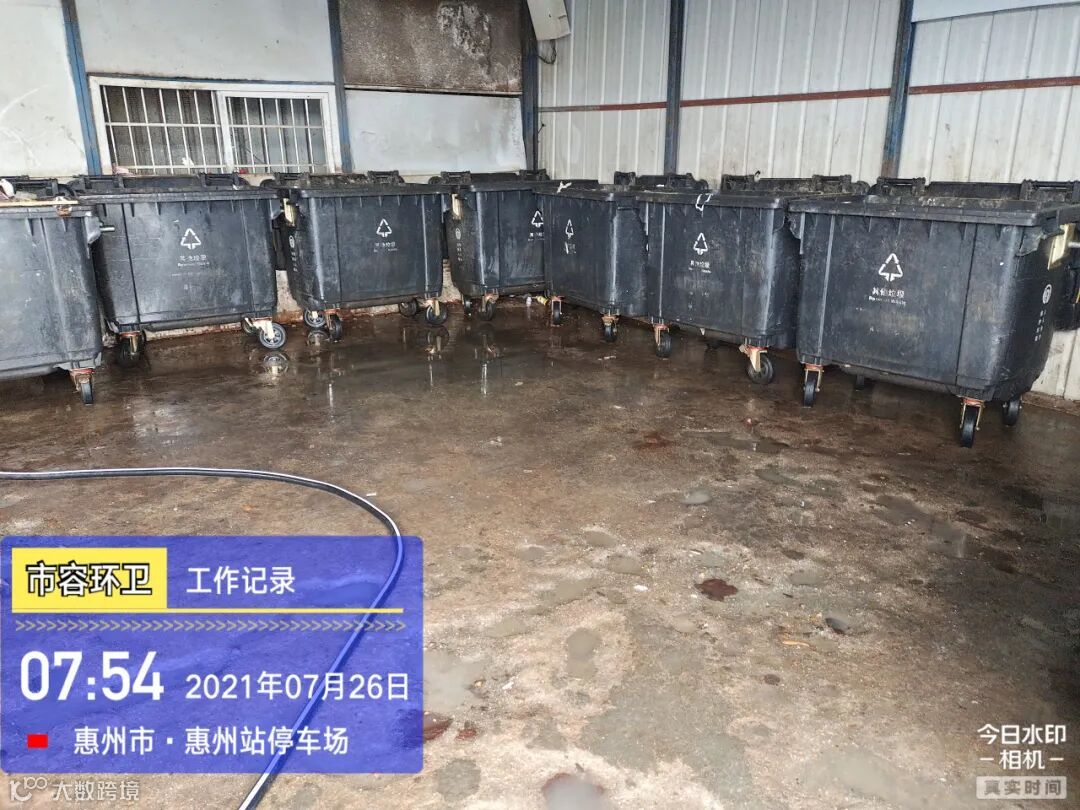 中转站/公厕日常作业及维护,每日两次以上高压冲洗并喷雾消毒站内外地面及箱体