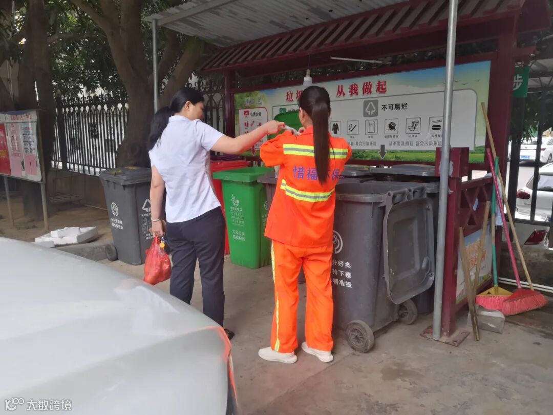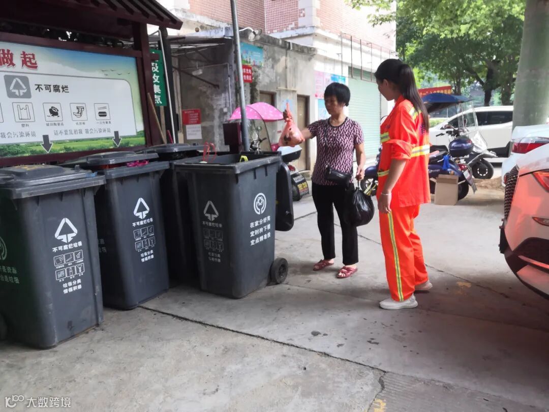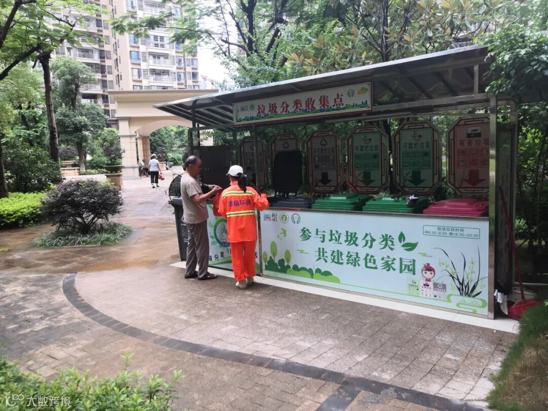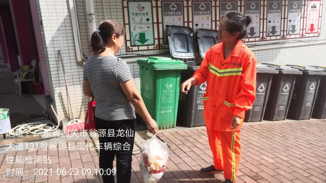 1、分类工作人员在试点小区守点宣传。