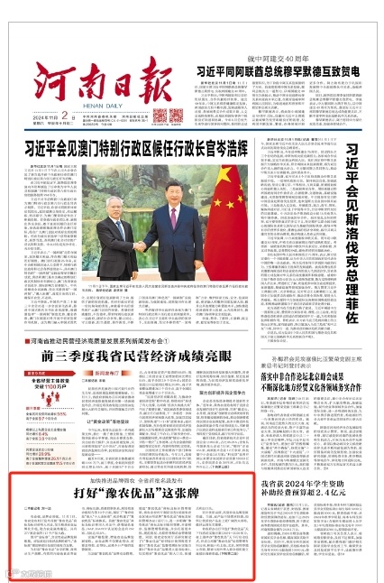 省政府办公厅印发《“豫农优品”天下行活动实施方案(2024—2026年)》,在上海举办“豫农优品”天下行启动仪式,并成立河南“豫农优品”运营管理有限公司,积极开拓上海、北京、深圳等地大市场,探索与海外华人商会组织建立连接出海新渠道。通过拓展线上线下两个渠道、海内海外两个市场,扩充“豫农优品”朋友圈,推动大粮仓、大厨房、大餐桌走向高端大市场。