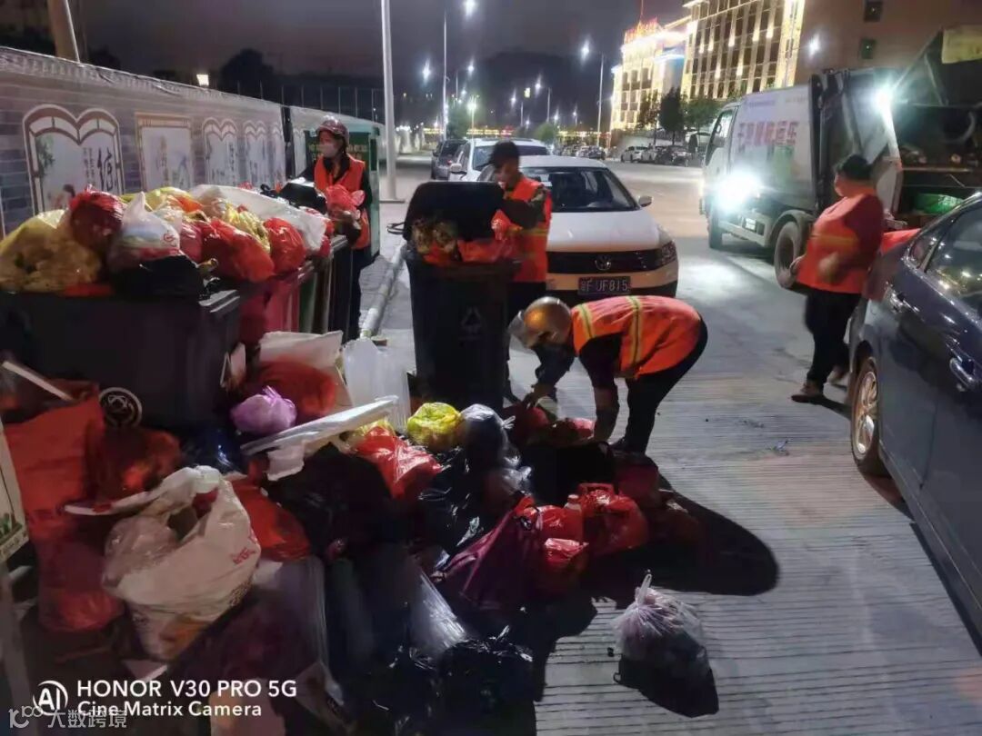 2、春节期间,垃圾量倍增各部门加班加点。抽调其他部门人员支援清运队伍,日夜加班,平均每天清运462.34吨,出动132车次。管理人员加强各片区的巡查,确保路面洁净垃圾日产日清。