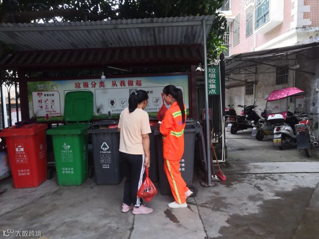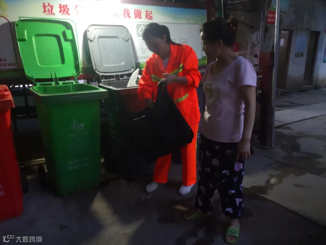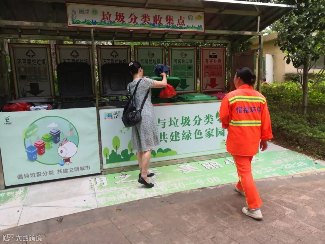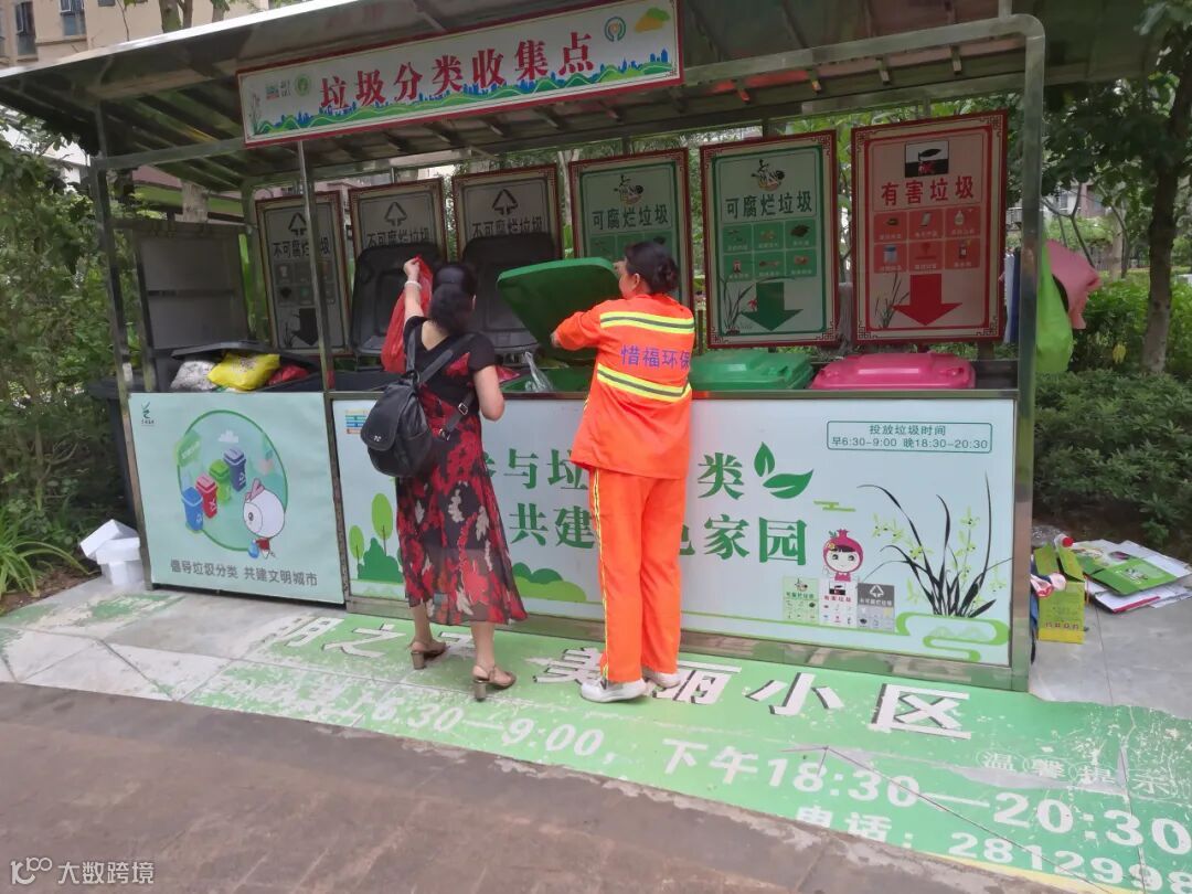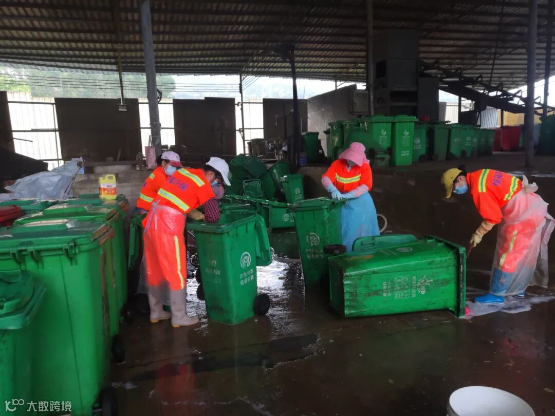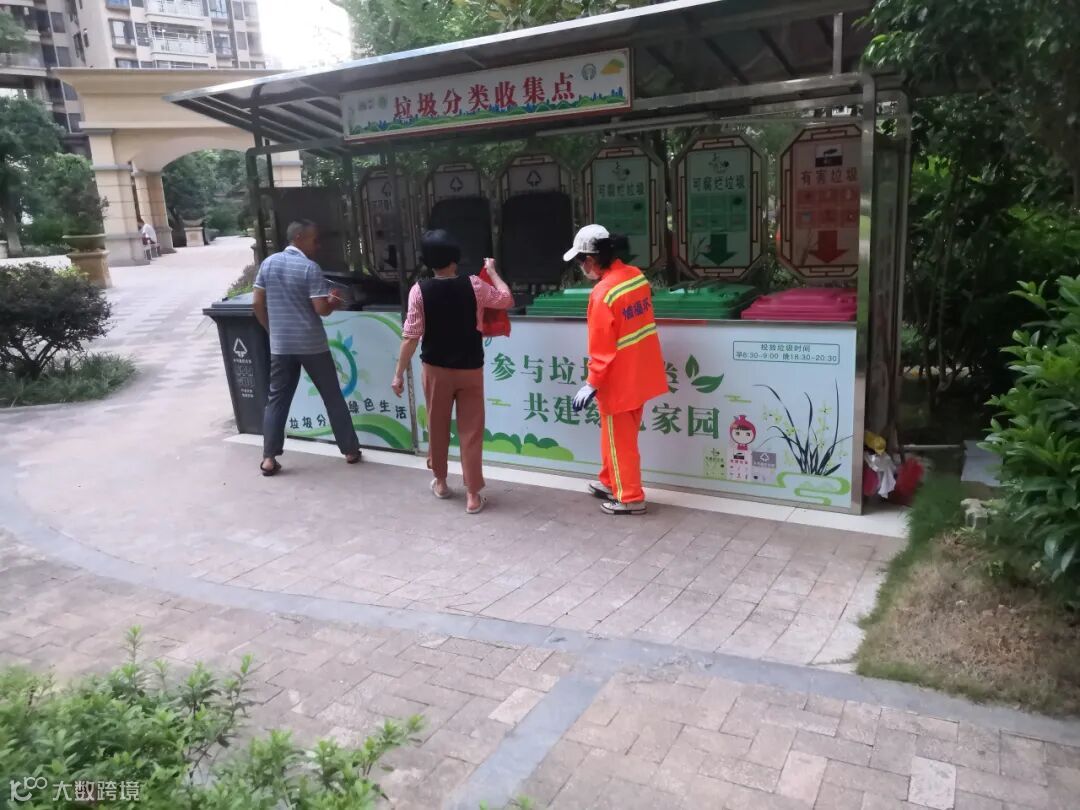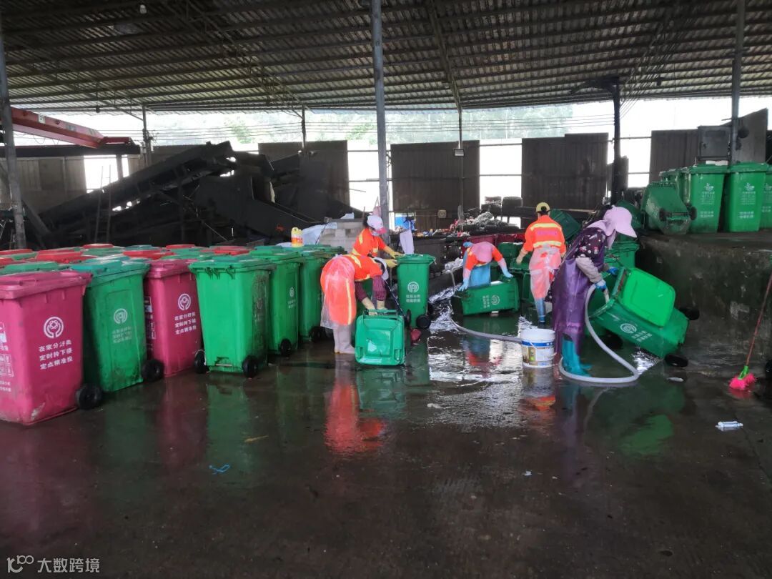 1、分类工作人员清洗各酒店和小区大小绿桶,并在试点小区守点宣传。