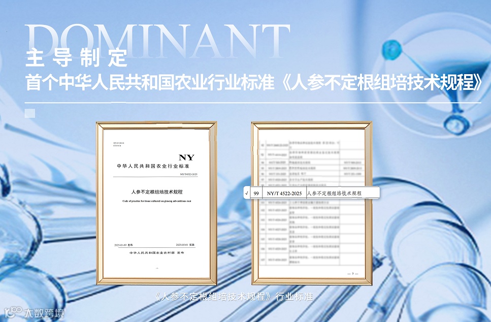 同时,企业深耕“政、产、学、研、用” 融合体系,联合哈尔滨工业大学、北京大学等顶尖院校搭建科研平台,攻克植物组织培养中生物量低、遗传不稳定等行业难题,累计获得近40项国家发明专利,更作为唯一企业单位联合中国标准化研究院主导制定《人参不定根组培技术规程》行业标准,以创新引领行业规范化发展,填补领域空白。