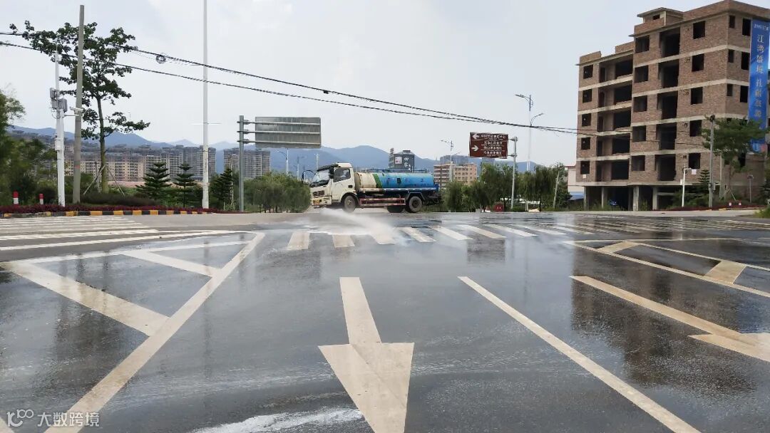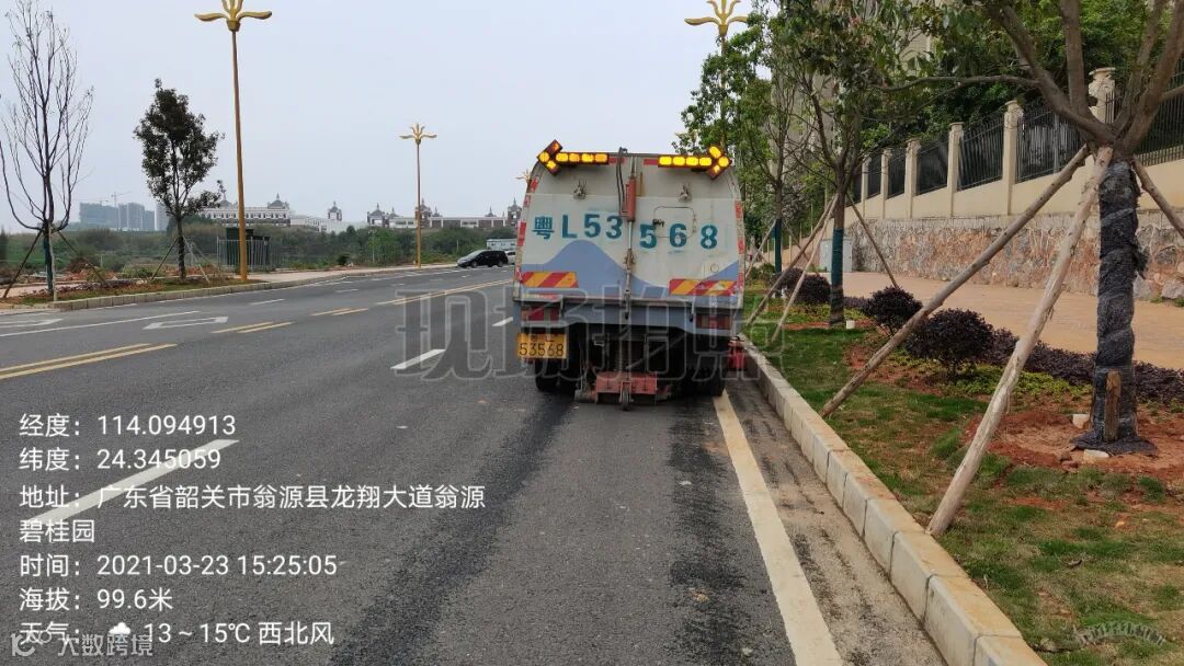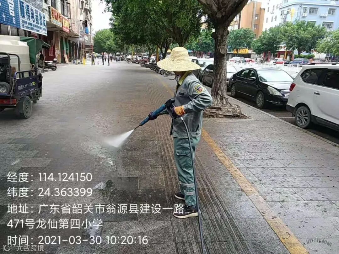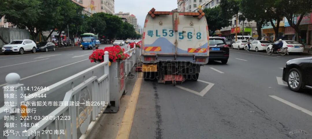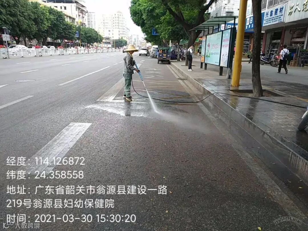 4、全面冲洗建设二路人行道,中间护栏,马路沿边。