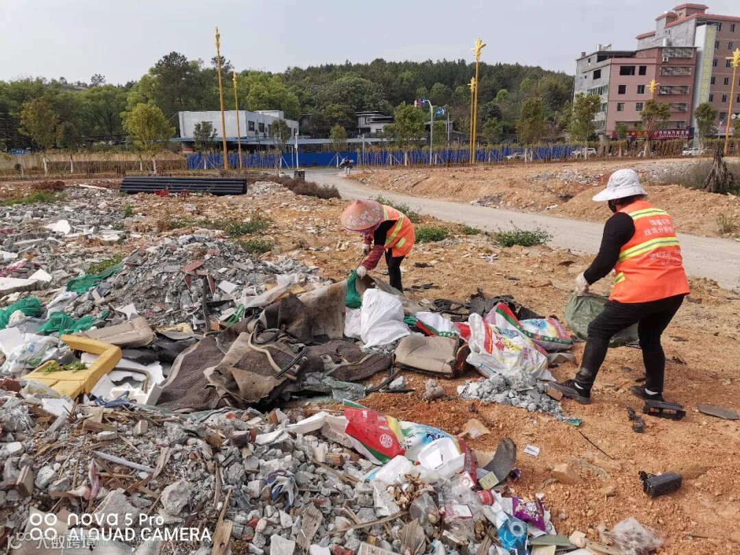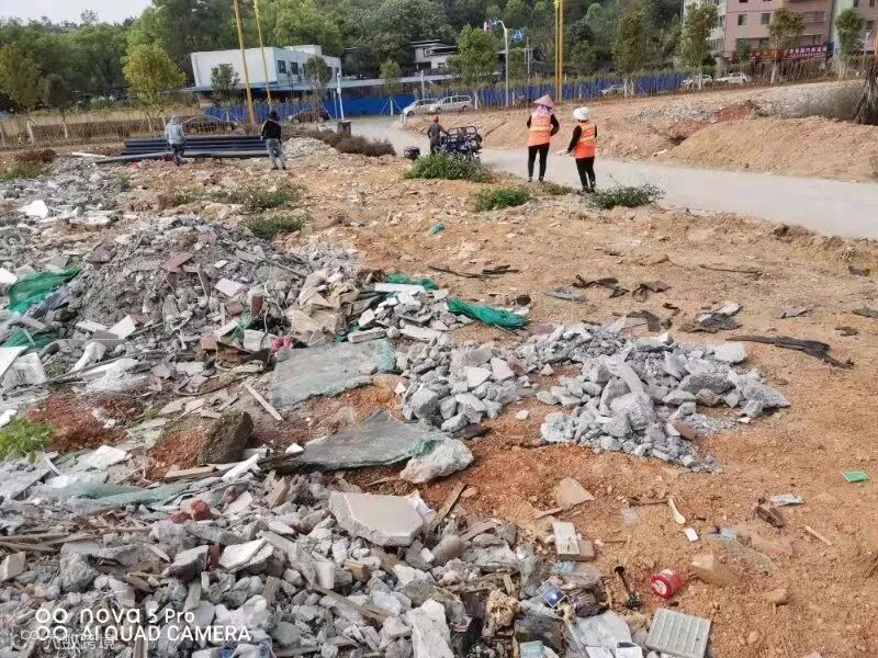 5、排查发现并清理城周边付屋段乱倒大量装修垃圾。