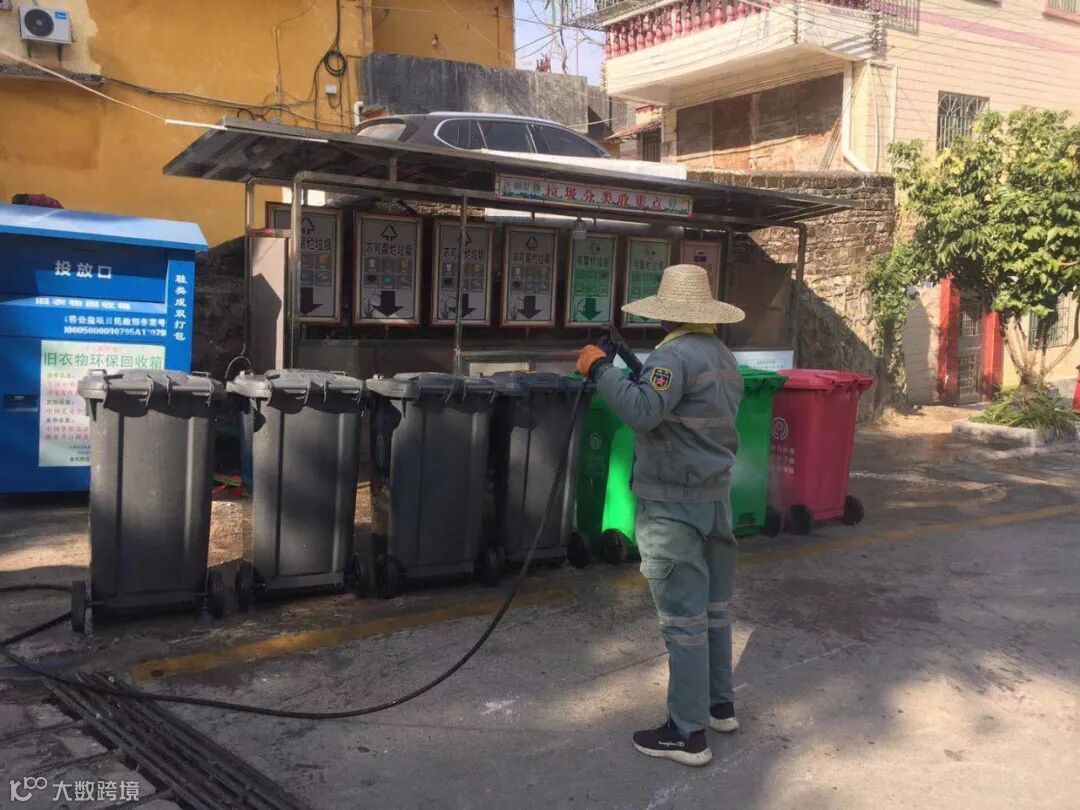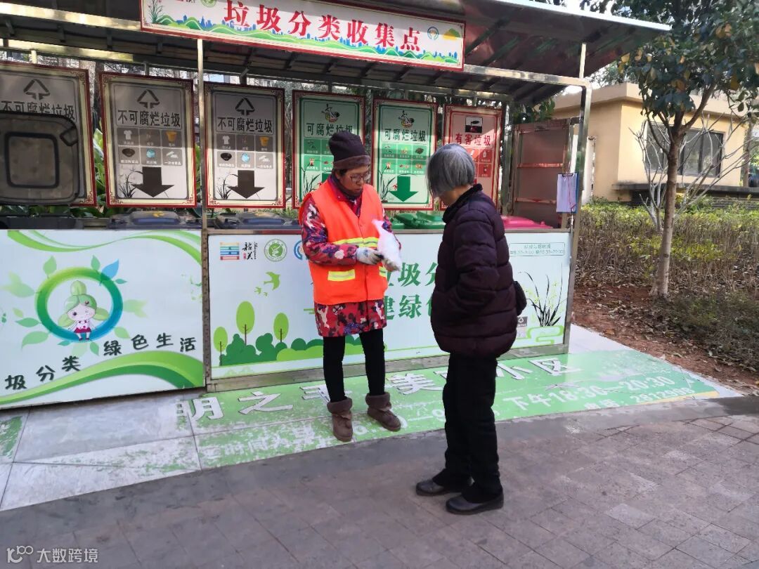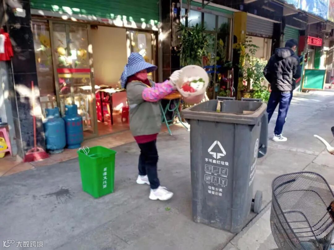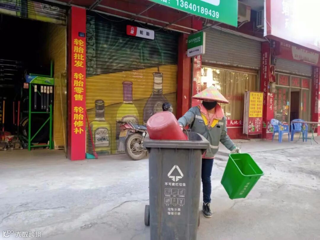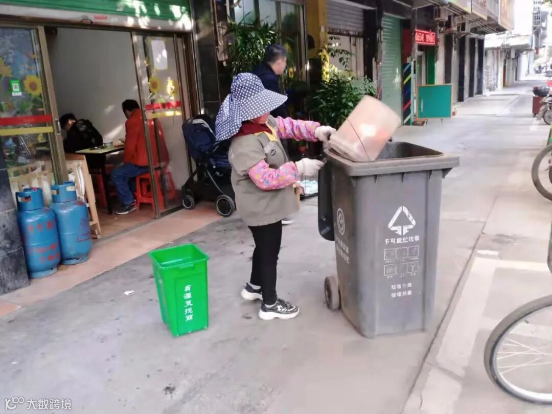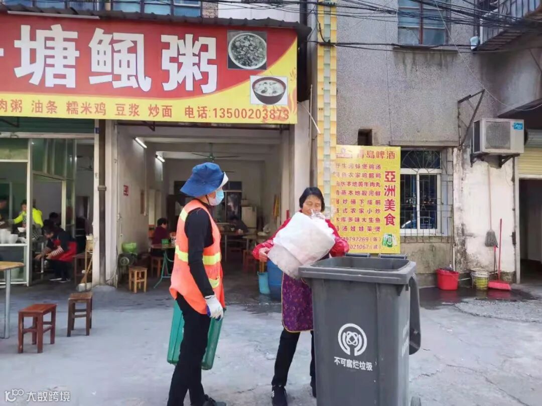 每天到建设一二路、朝阳路、龙英路、环城北路店铺上门收集垃圾,宣传垃圾干湿分离。