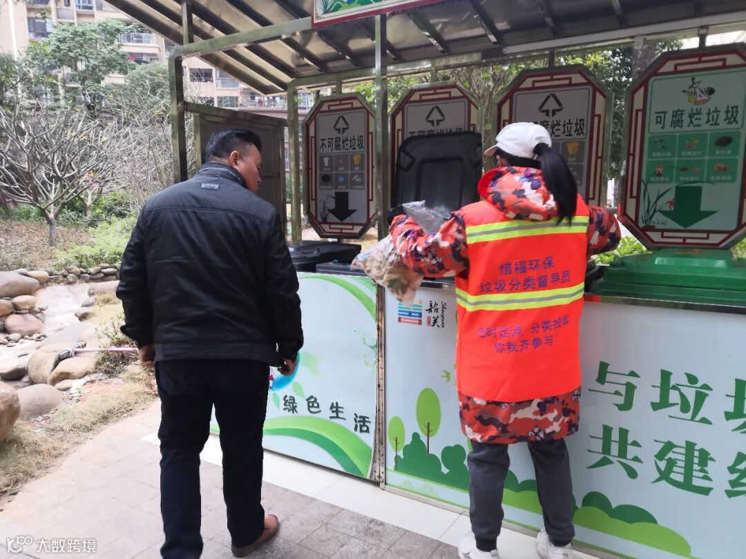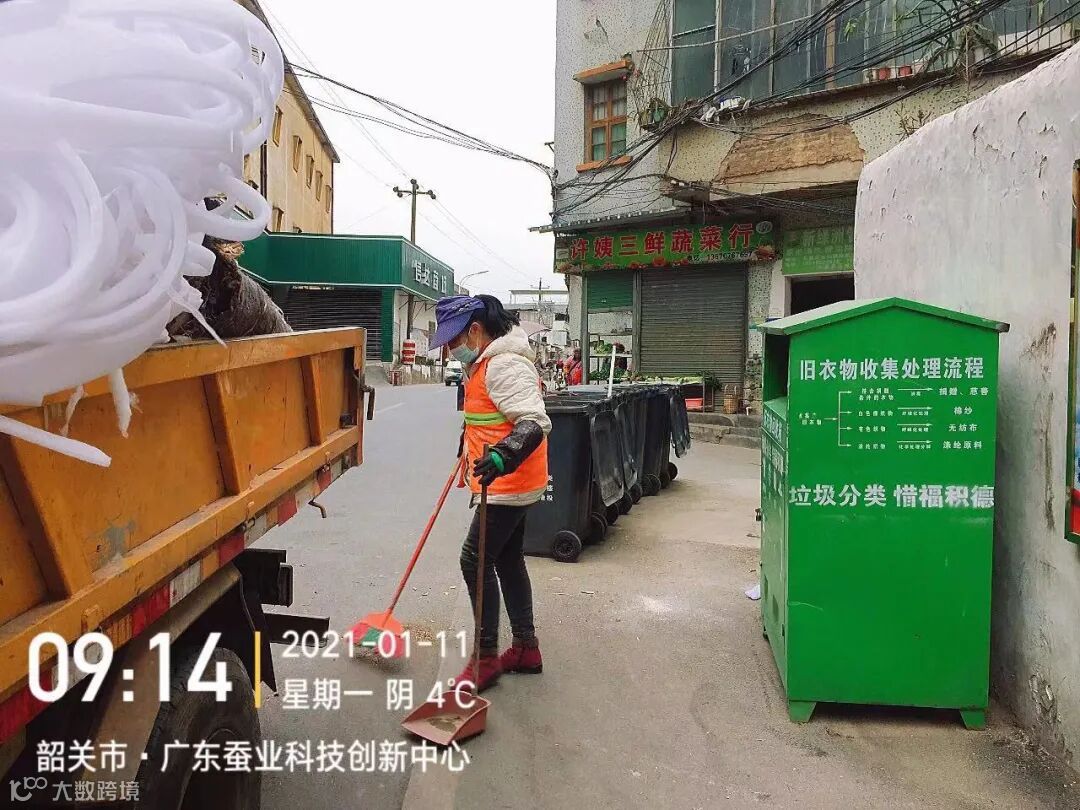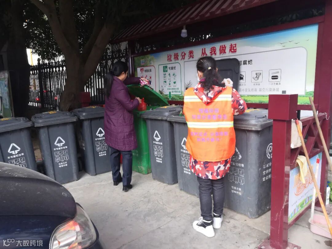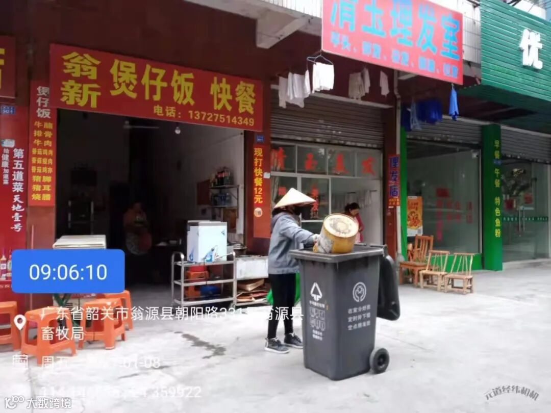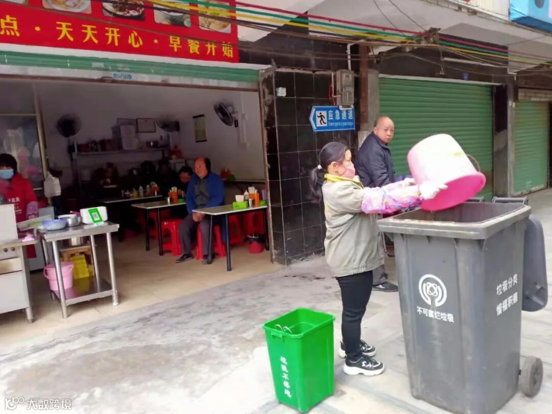 每天到建设一二路、朝阳路、龙英路、环城北路店铺上门收集垃圾,宣传垃圾干湿分离。