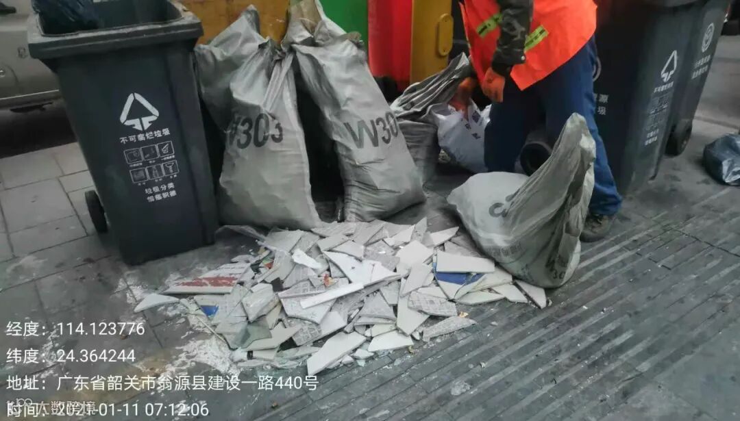 3、临时组织人员清理城区桶脚边乱倒装修垃圾。