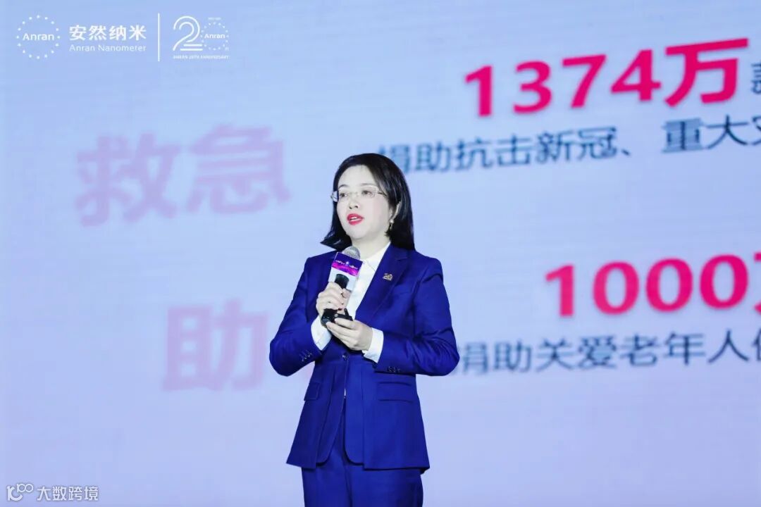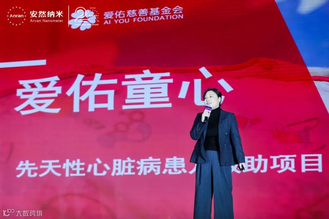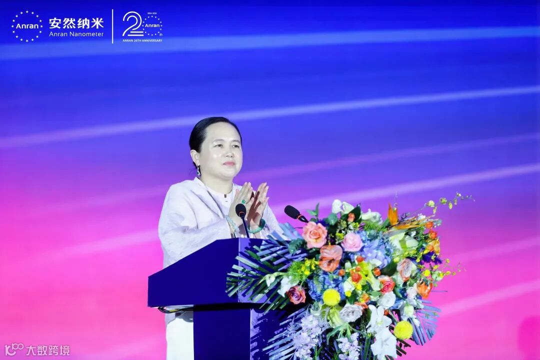 安然集团副董事长、总裁梁浩女士发表致辞。她表示:20年来,安然始终不忘初心,坚持打造大愛文化和导人向善的平台,把愛和感恩送进每个家庭。希望每一位安然家人都能保持初心和热情,与安然携手并进,共同实现人人安然、世界安然的美好心愿!