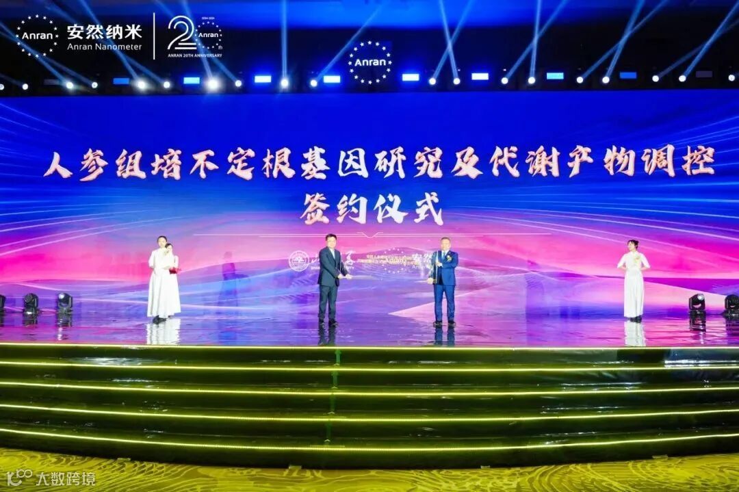 盛典现场,安然与山东大学正式签约,开启植物干细胞领域全新合作项目——安然人参组培不定根全基因组、代谢组测序及关键产物调控分析合作项目。