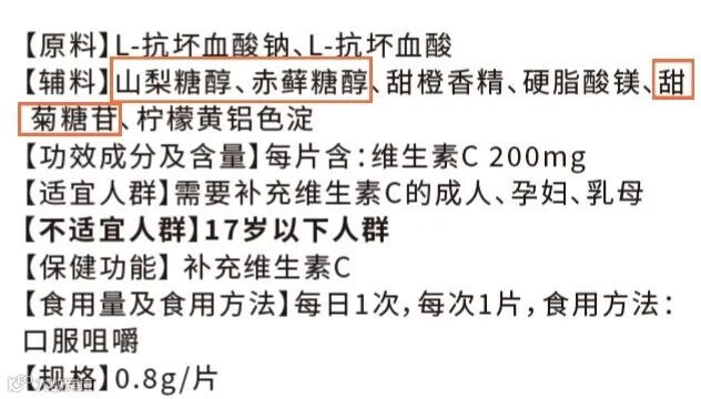 且从配料表中可以看出,里面没有添加蔗糖、白砂糖,而是用山梨糖醇、赤藓糖醇、甜菊糖苷3种代糖,它们均不会提高血糖,减少对身体造成的负担。