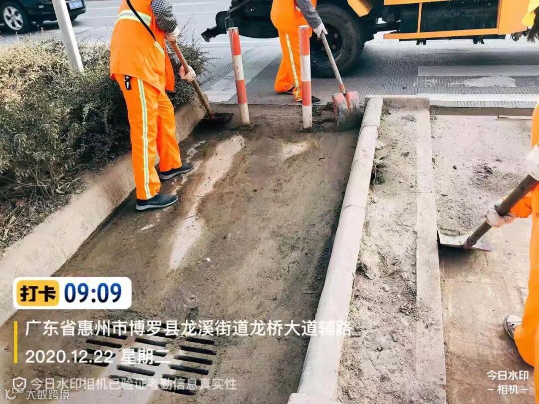 (清理龙桥大道安全岛和绿化带凹槽泥沙)