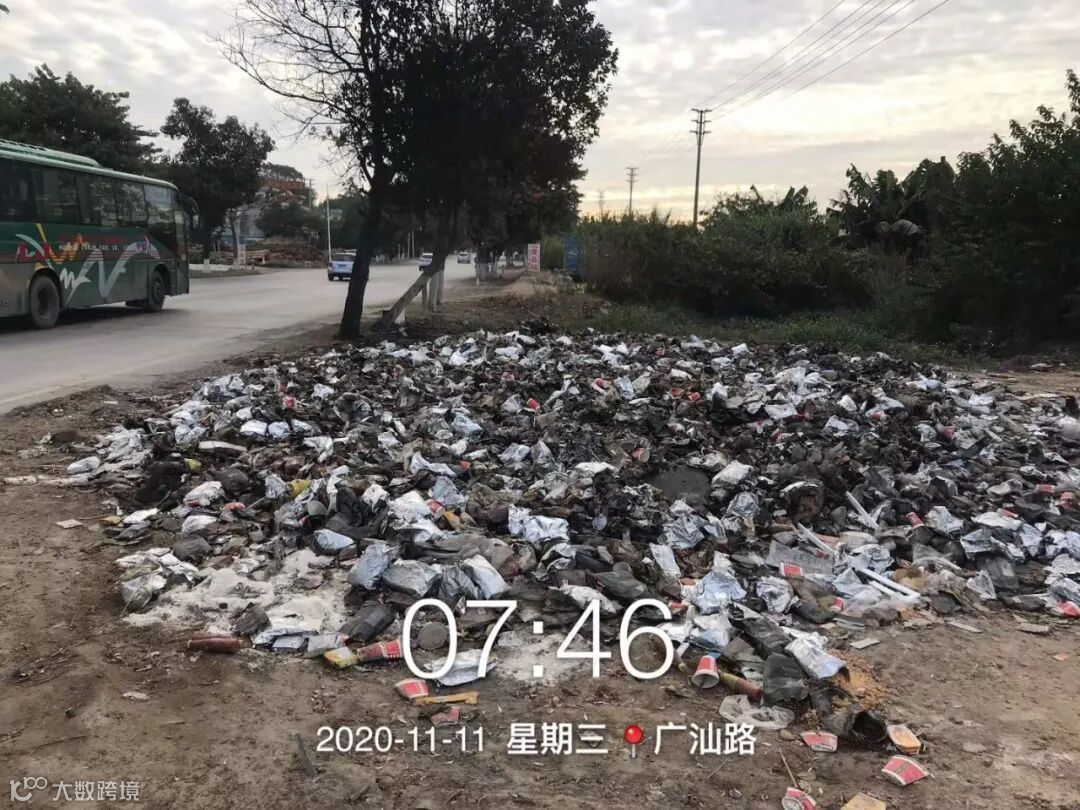 (清理广汕路边偷倒工业垃圾,并上报相关职能部门)
