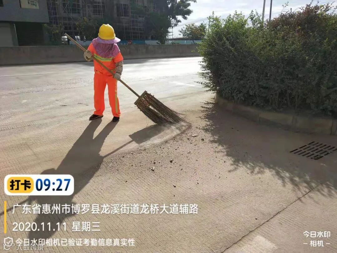 (龙桥大道、龙岗大道路面污染严重,劝导队工作人员协调劝导)