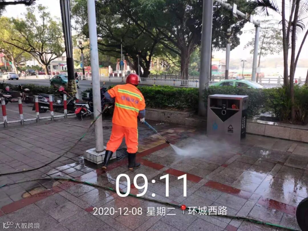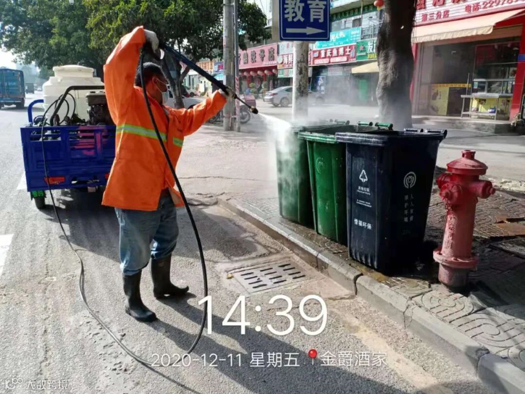 高压冲洗人行道污染路段及桶点