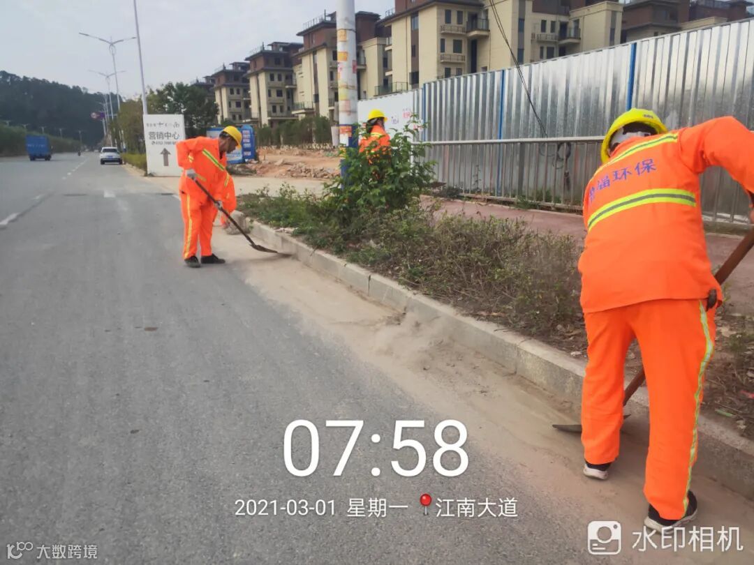 3、突击队协助清理江南大道、金泉路等新路段泥沙及漂浮垃圾清理;