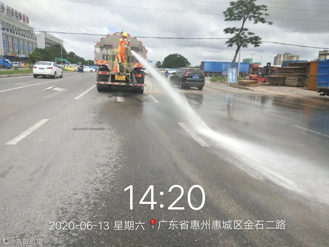 3,保洁车队及时排查车辆运输安全隐患,洗扫车队重点冲洗清扫暴雨后泥沙污染路段,雾炮车配合生态局发布的预警,按应急预案路线及频次进行喷雾及洒水;