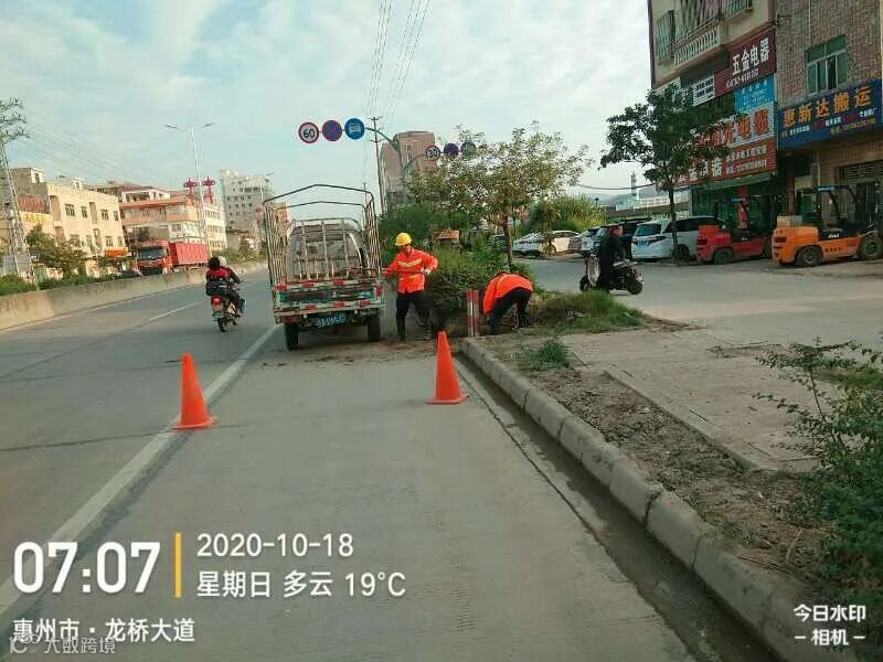 1、重点整治龙桥大道辅路、人行道路边杂草积沙,迎接公路局国检。