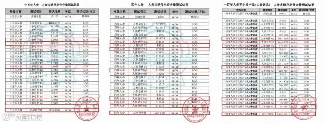 经哈工大实验室状态数据显示,特等野山参干细胞产物的皂苷总含量是普通四年人参的136倍,Rh2、Rg3含量分别是普通四年人参的82倍、23万倍;