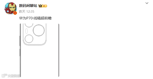 就在近日,博主@数码闲聊站 在微博分享一张华为P70超前瞻线稿,展示了这款新机的背部外观。