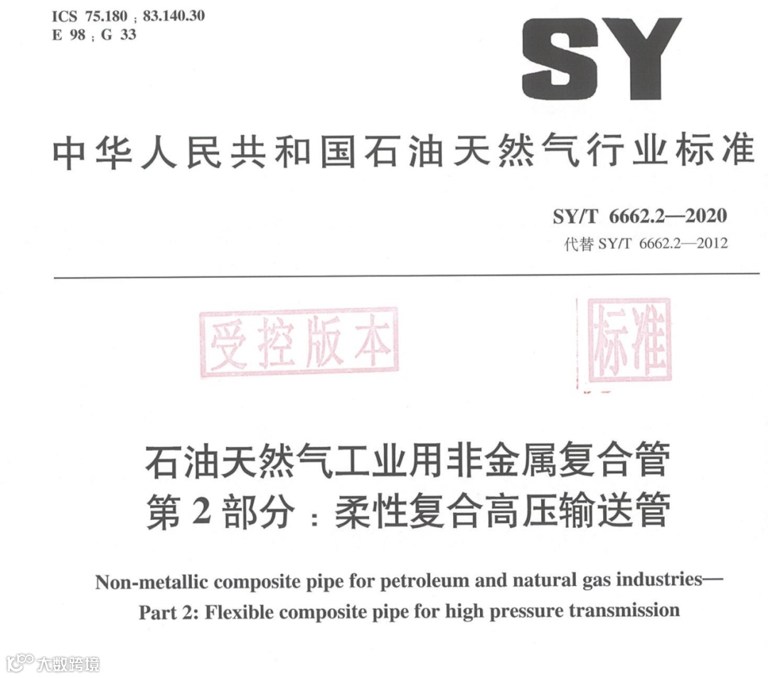 SY/T 6662.2-2020 是中国石油天然气工业用非金属复合管(石油天然气行业标准),涵盖了柔性复合管用于高压输送的第二部分。