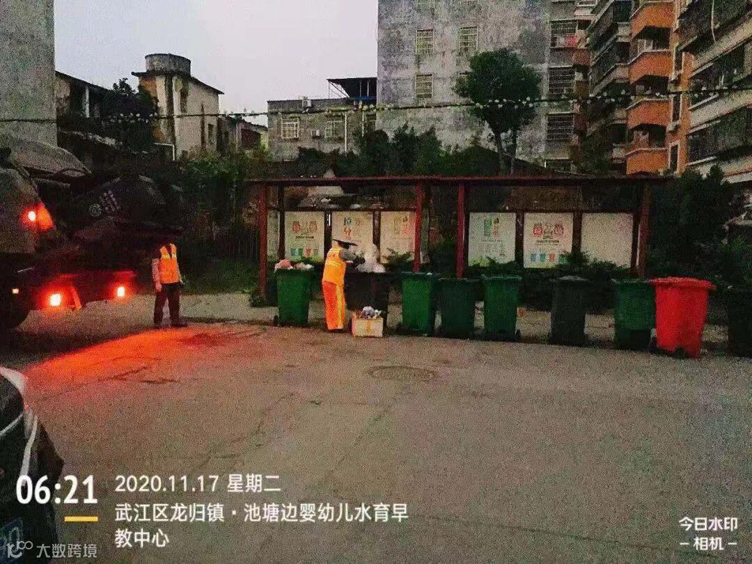 这周常态清运派出压缩收运一体车323车次,常态保洁、机动保洁作业689人次,清理龙归镇、重阳镇、江湾镇、西河部分地区的垃圾总量约668吨。