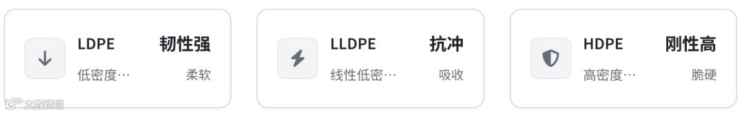 韧性最高:LDPE > LLDPE > HDPE(HDPE虽硬度高但韧性相对较低)。