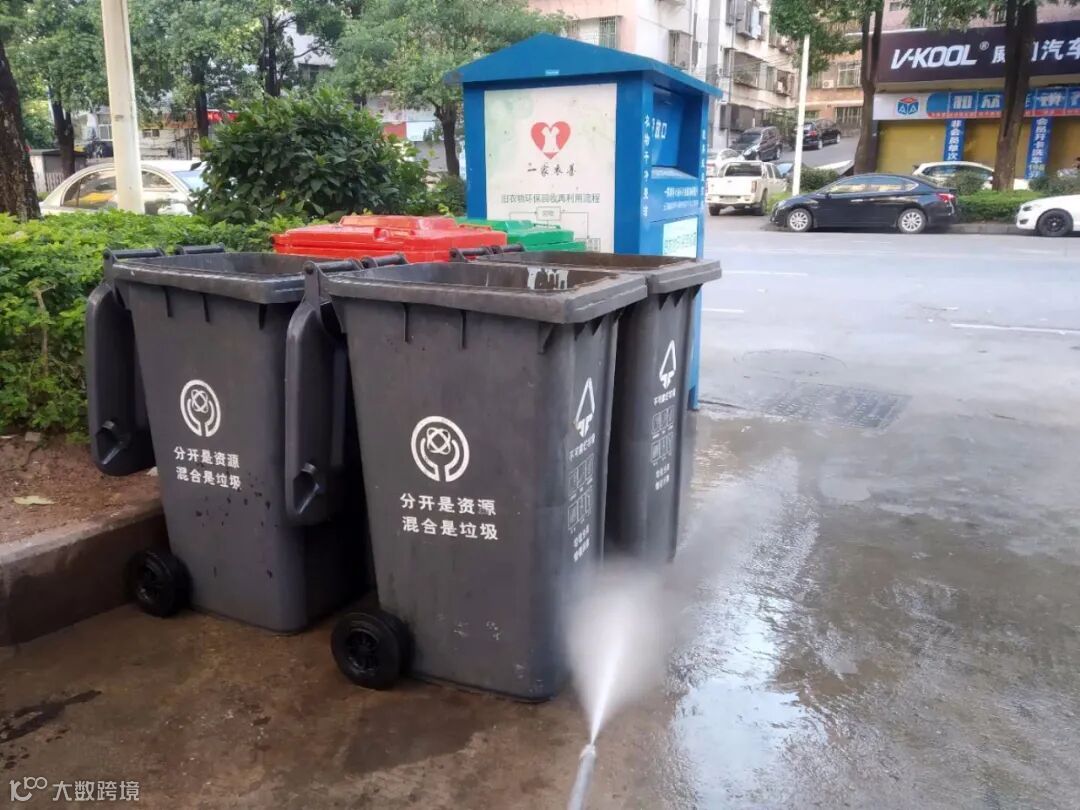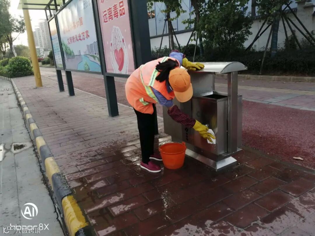 5、坚持做好城区环卫公共设施、果皮箱及桶脚地面的清洗作业。