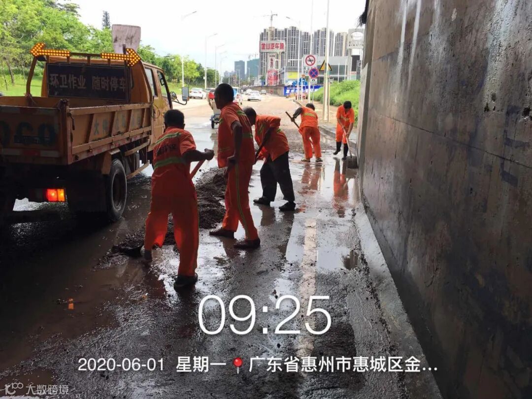 3、洗扫车除日间夜间常态作业外,加强对雨后慢车道泥沙污染的冲洗工作;