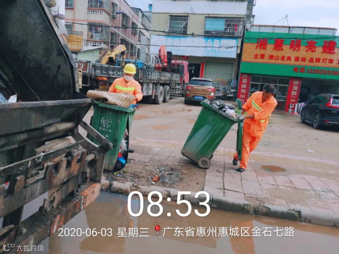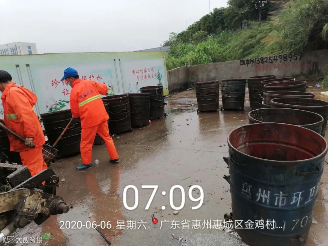 (突击队协助清运雨后路边泥沙及定期清洗消毒垃圾桶)