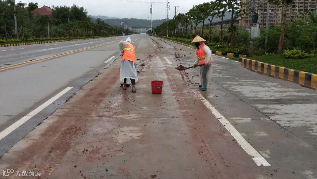 (2)西区存在工程车出入带泥上路严重、运载泥沙满溢洒落路面、暴雨天流出路面大量泥巴造成大片路面污染。