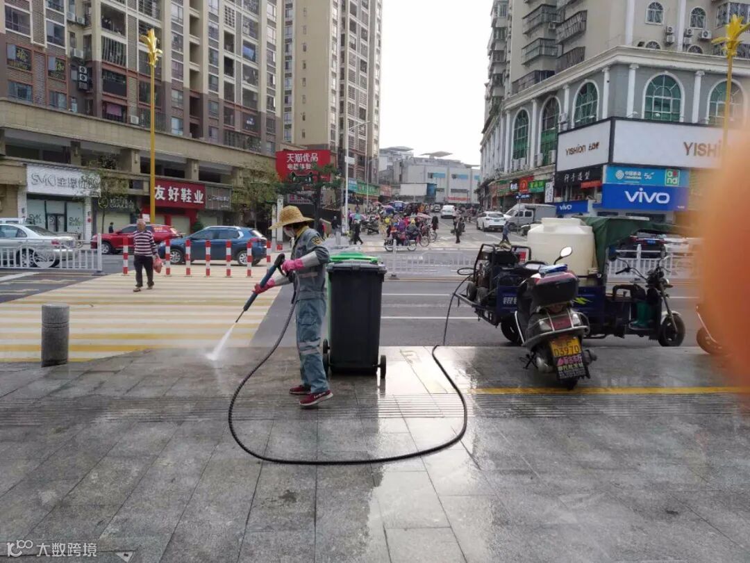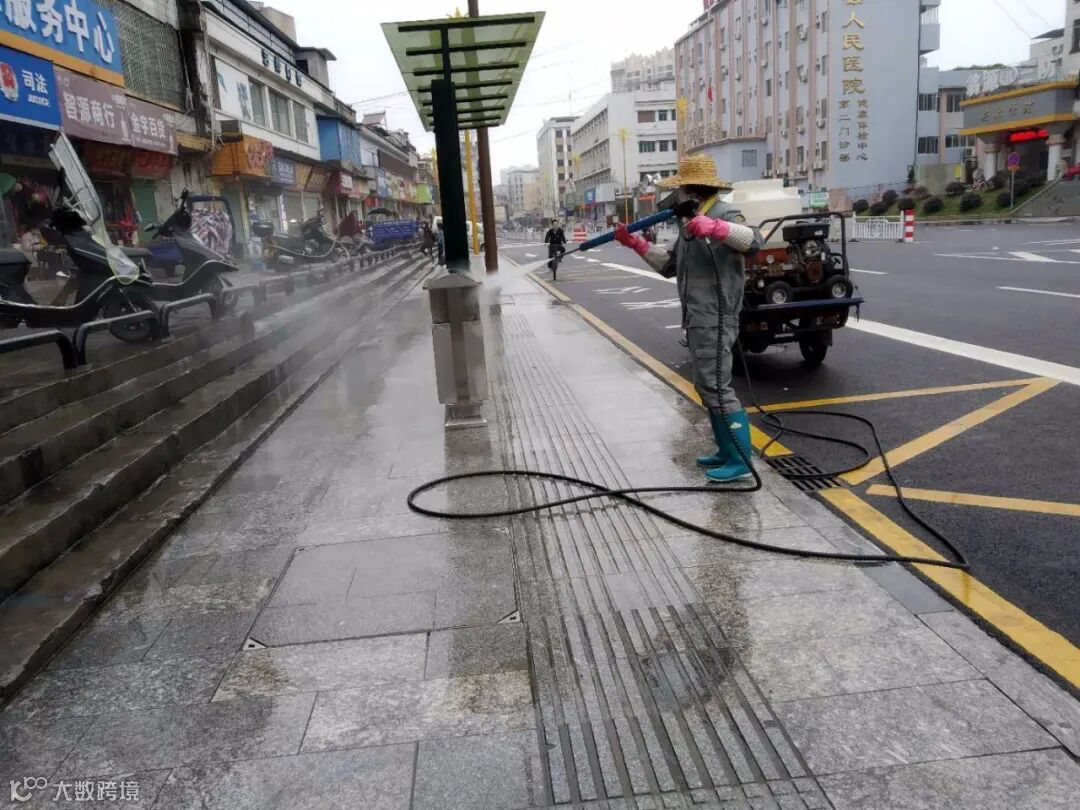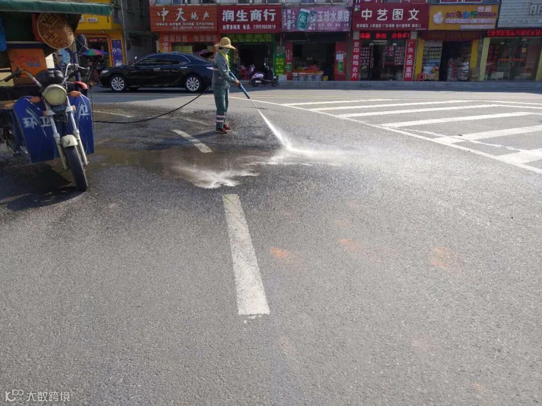 每天2次利用高压机全面对县区公共场所和环卫公共设施清洗、消毒,专人对公厕消毒等方式坚持做好防疫工作。