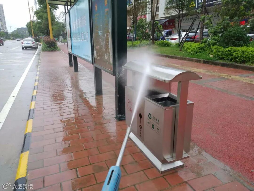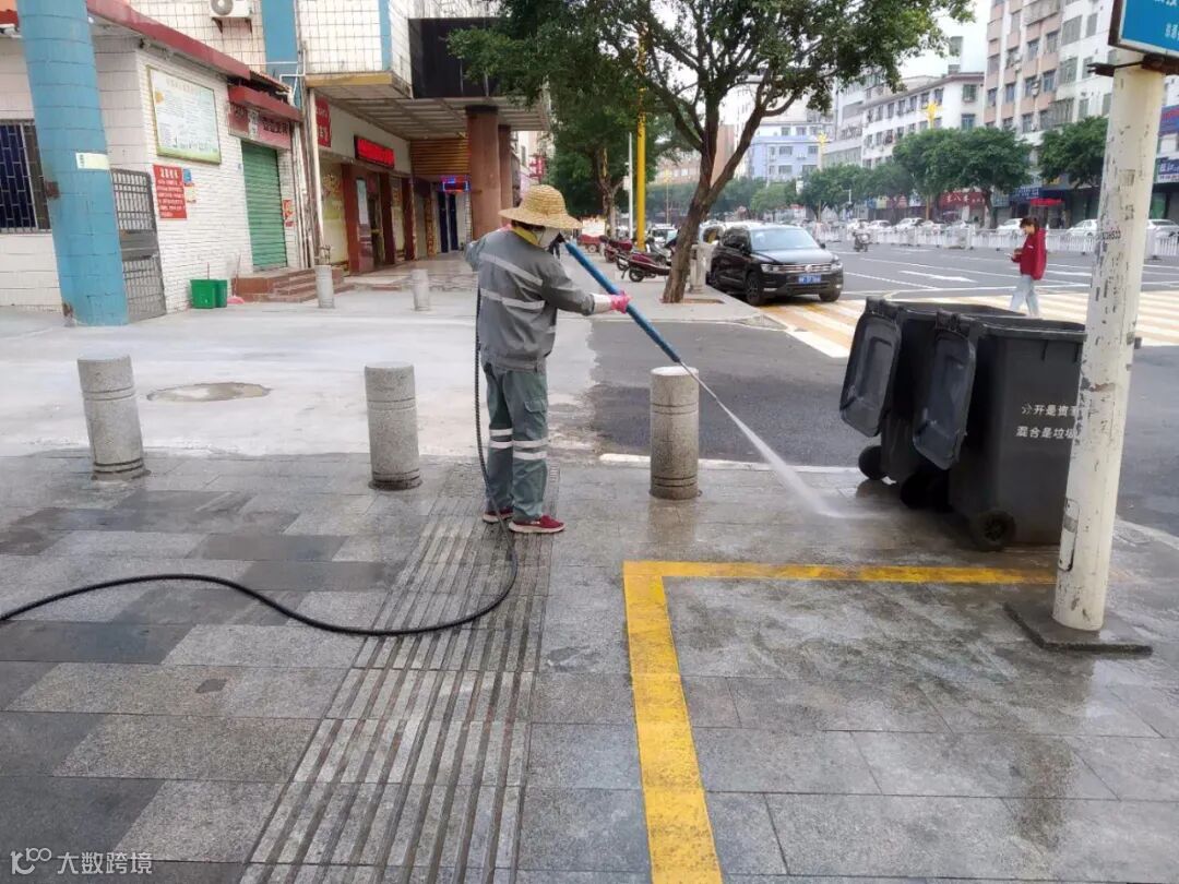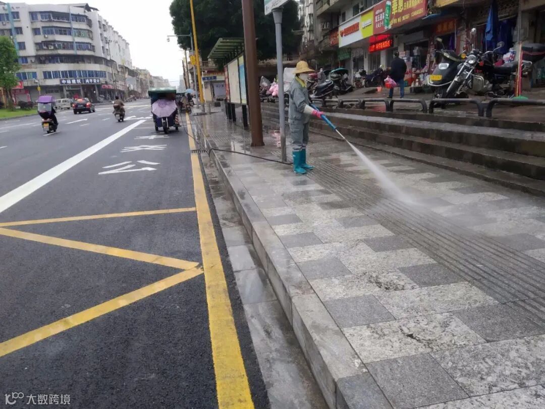 2、每天2次利用高压机全面对县区公共场所和环卫公共设施清洗、消毒,专人对公厕消毒等方式坚持做好防疫工作。