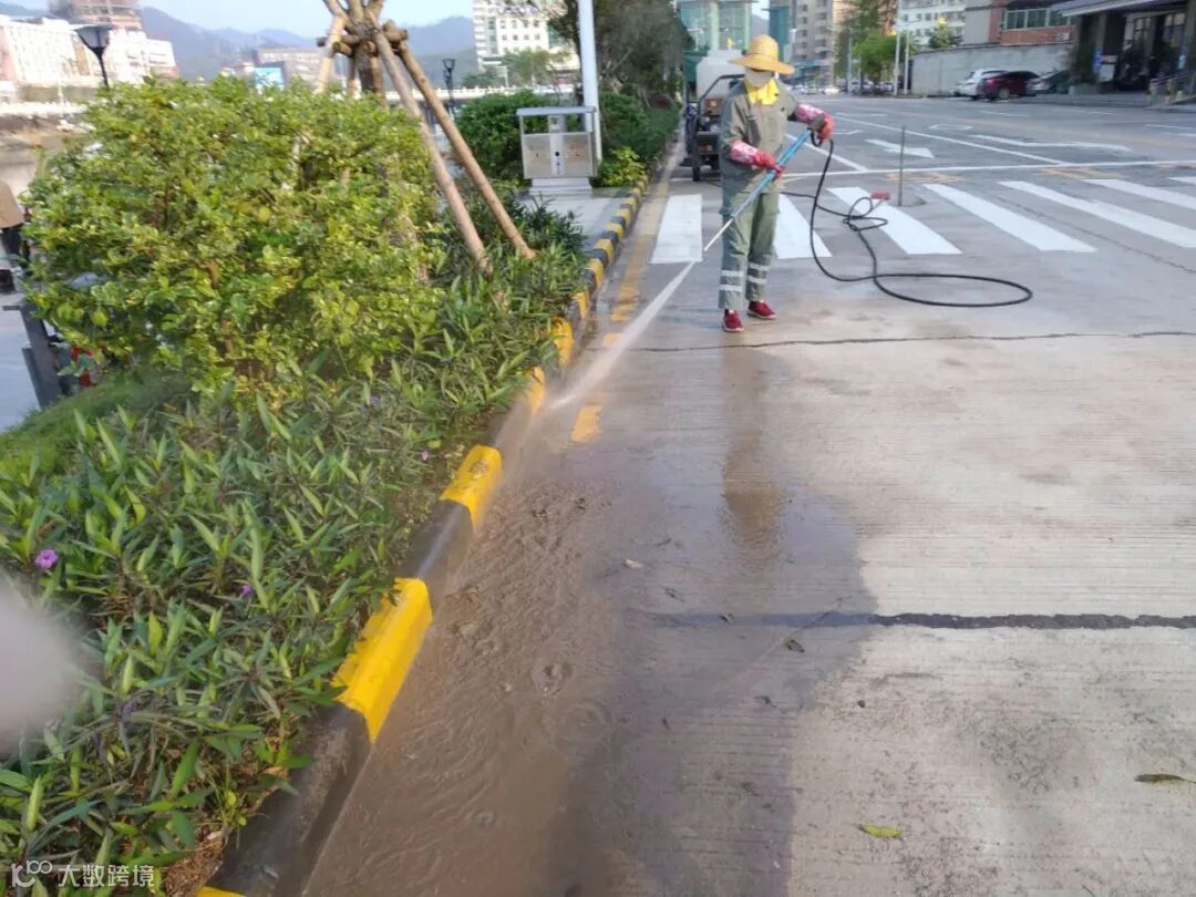 各辖区员工每天按正常作业,加强巡查清理卫生死角、大街小巷杂草、牛皮癣、乱张贴、乱涂写、乱拉挂、冲洗公厕、水域打捞、洒水车、清扫一体车按8小时作业冲洗清扫街道,两台高压冲洗机加强冲洗人行道、垃圾桶、县城10台垃圾清运桶装车,加县周边3台6吨压缩车按6班制加班加点轮回不停清运垃圾,各区负责人每天按正常加大力度巡查员工正常作业工作。
