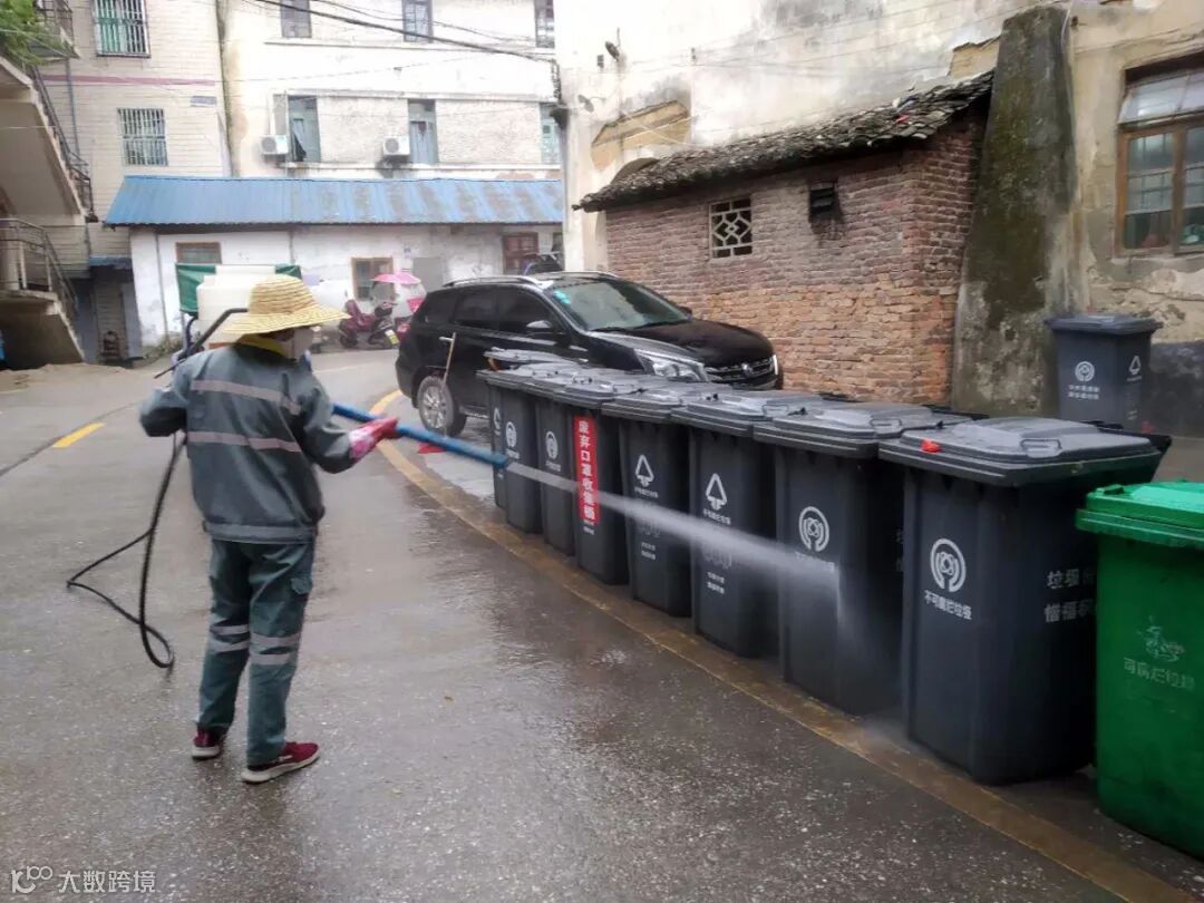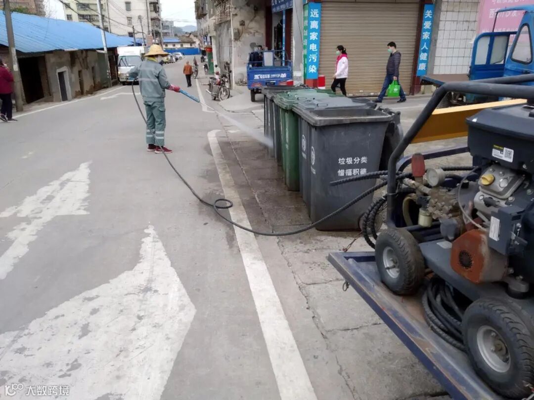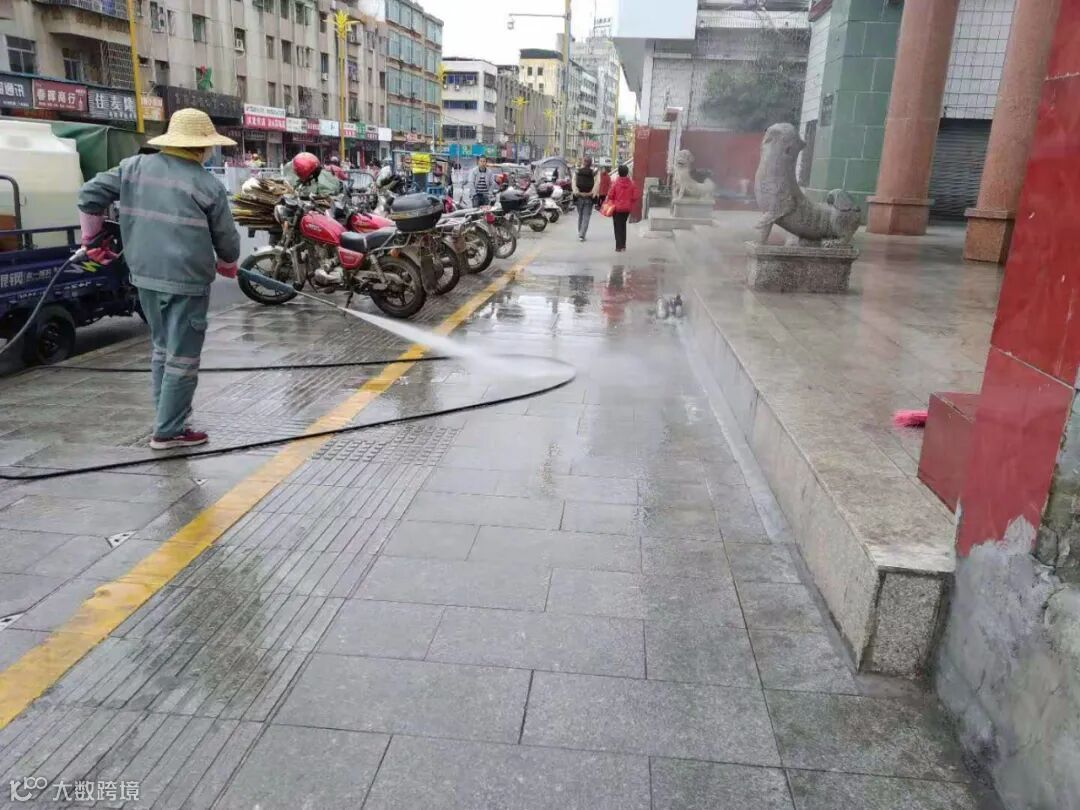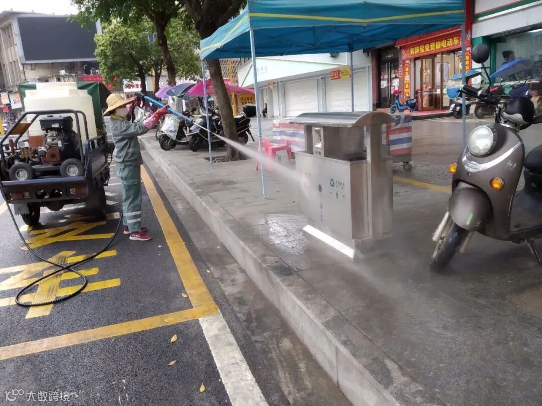 利用洒水车添加消毒剂,高压清洗车对广场、人行道、垃圾桶、果皮箱消毒等形式,继续齐心防疫。