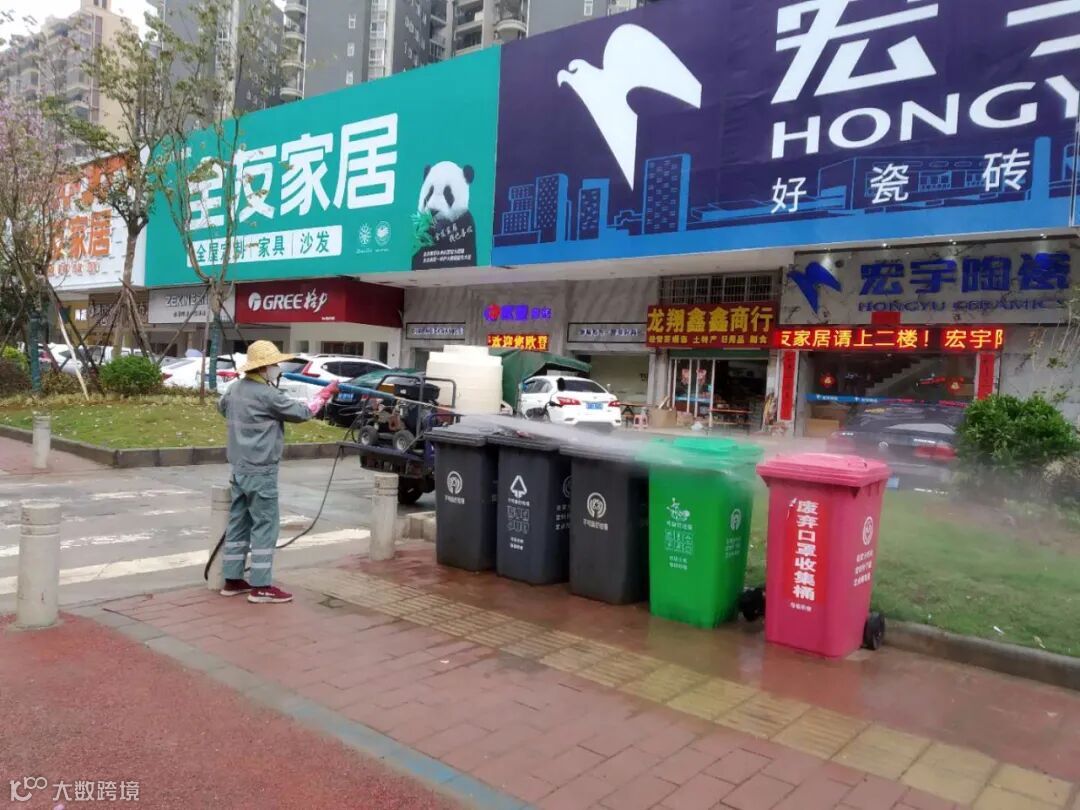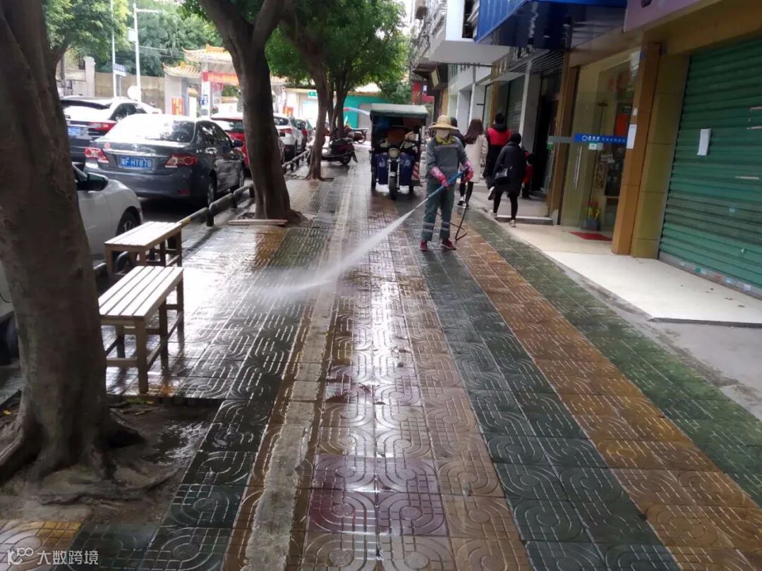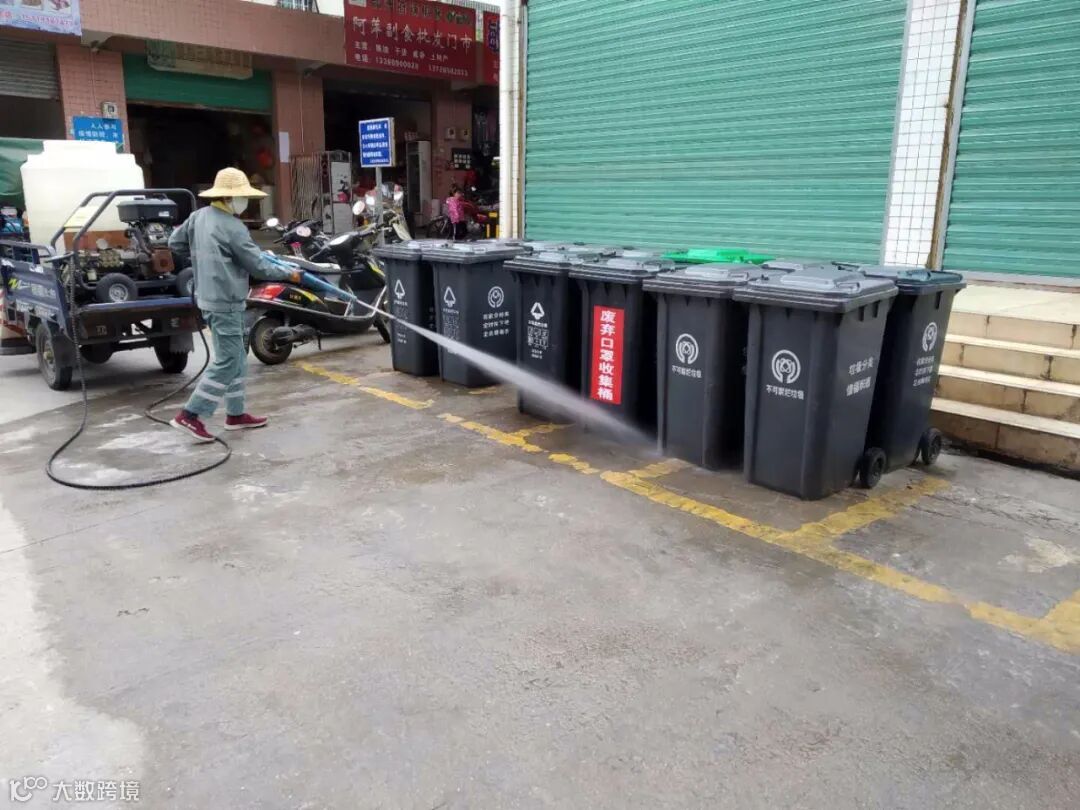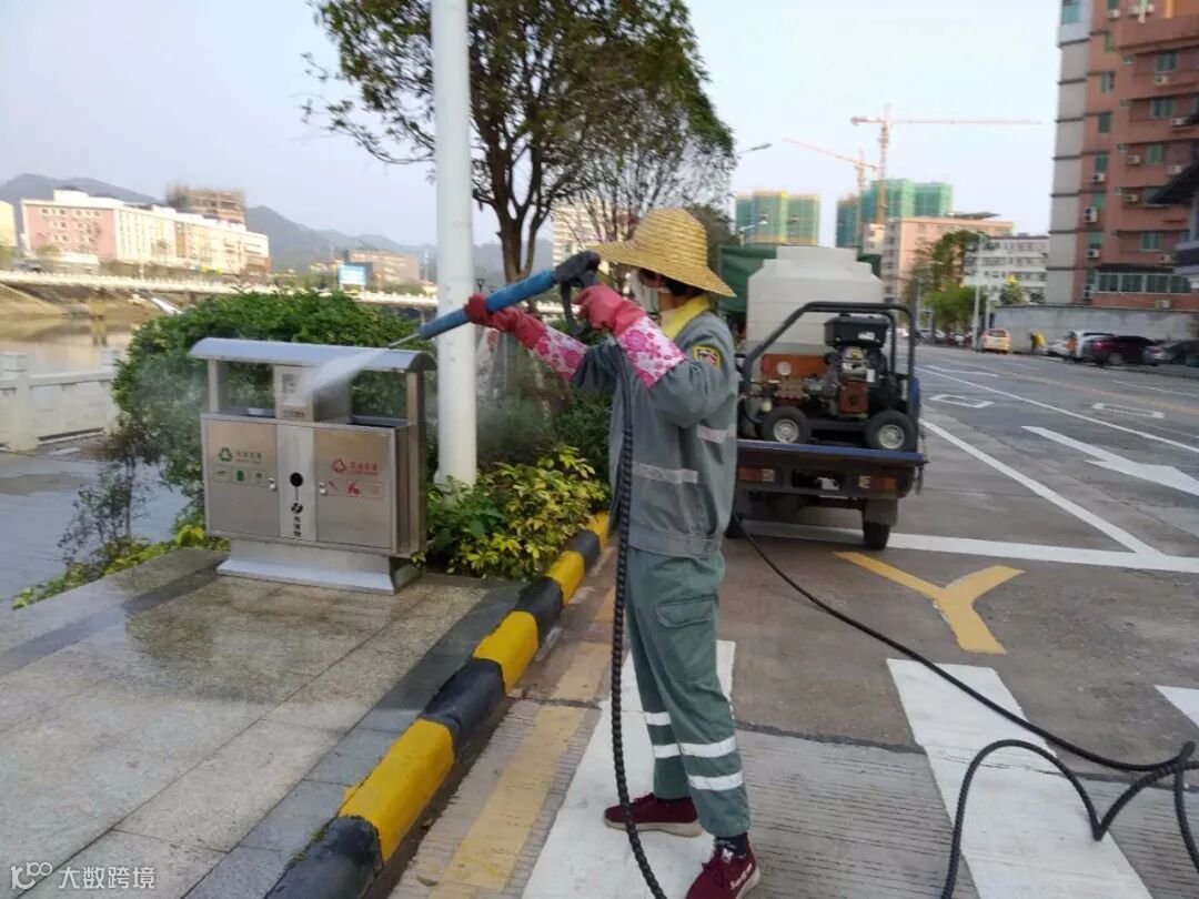 利用洒水车添加消毒剂,高压清洗车对广场、人行道、垃圾桶、果皮箱消毒等形式,继续齐心防疫。