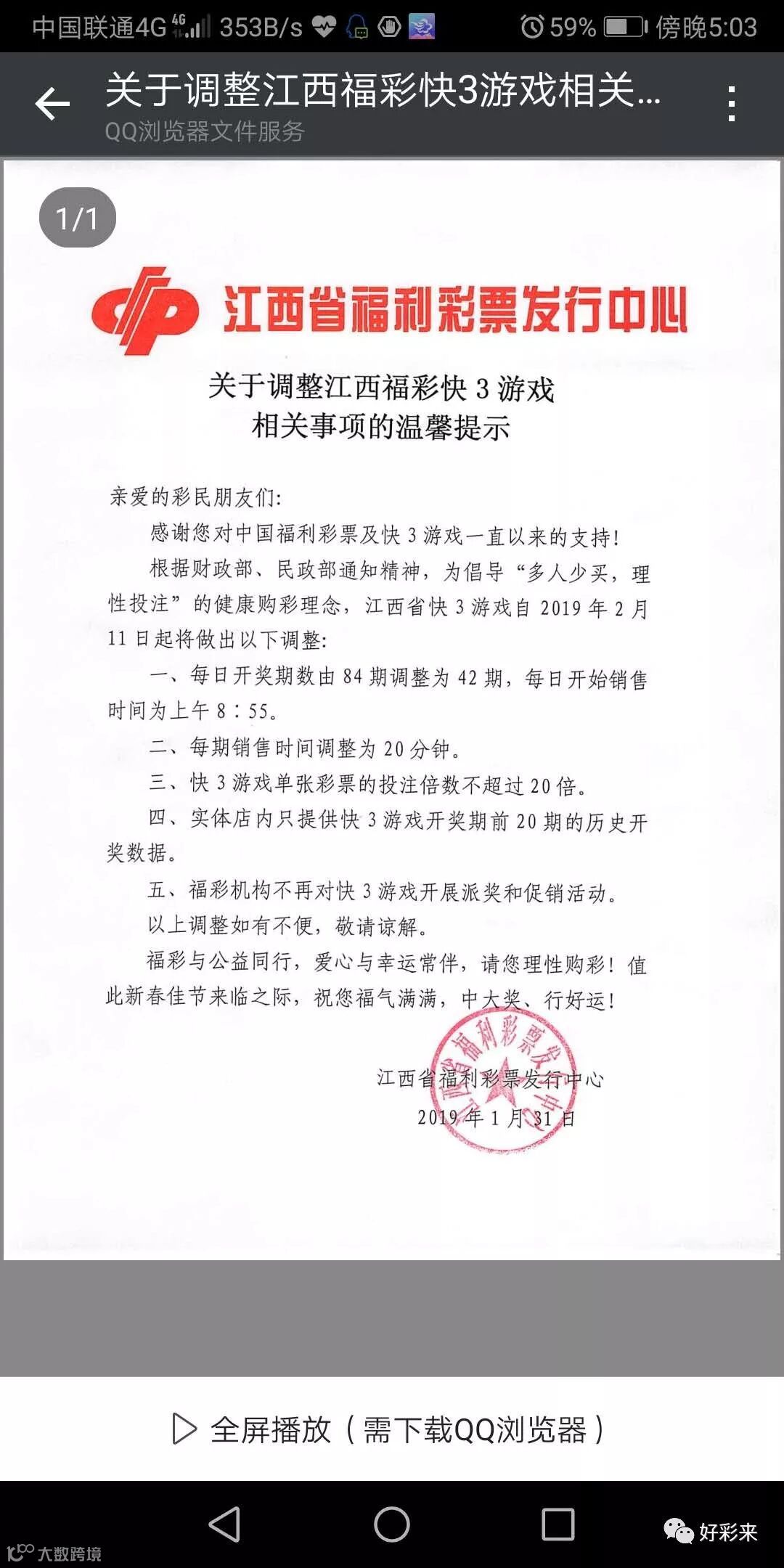 关于调整江西福彩快3游戏相关事宜的温馨提示