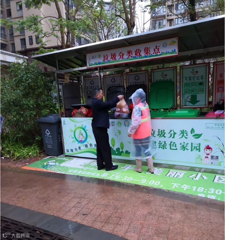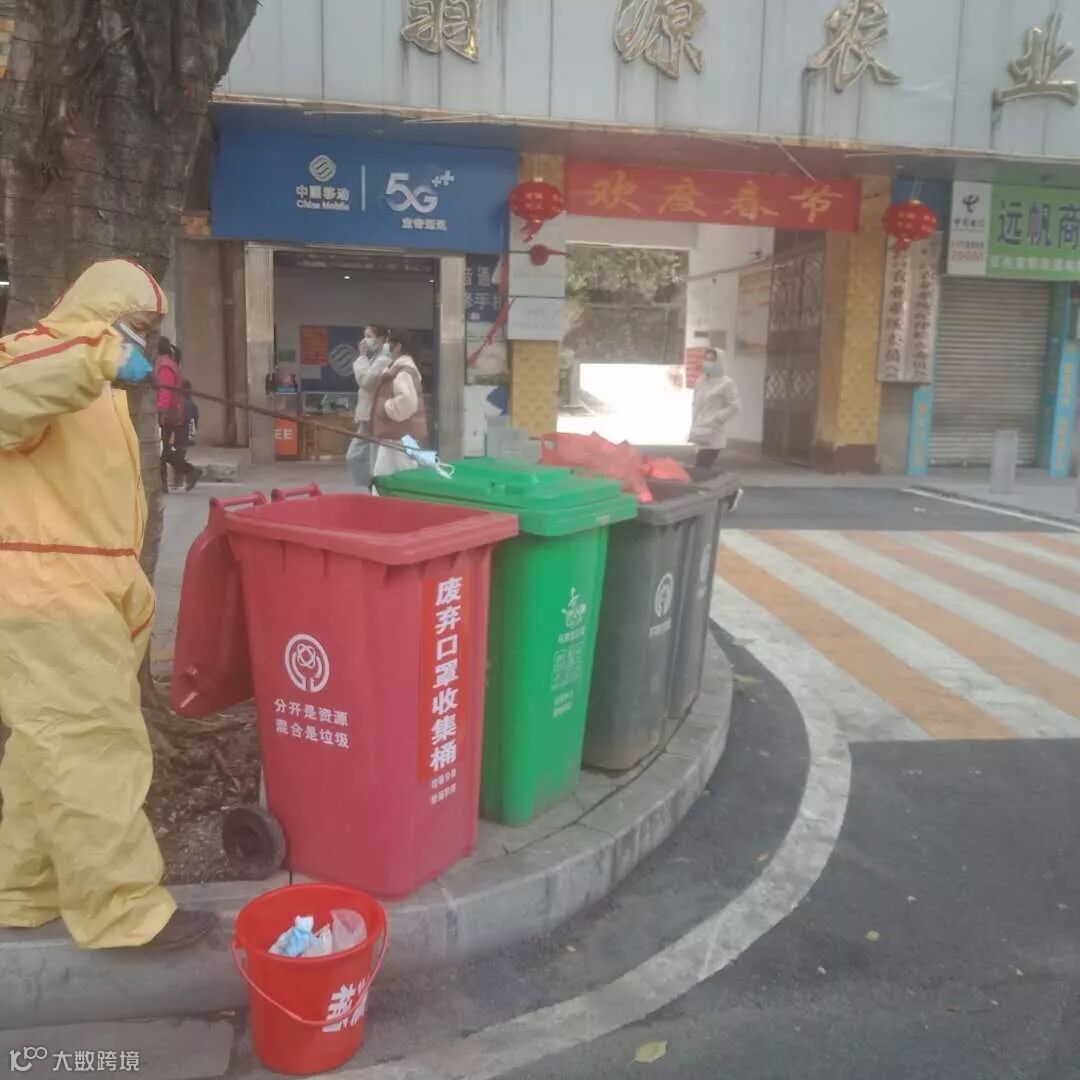 1、各分类劝导员在各主要路段和各试点小区守点宣传干湿垃圾、废弃口罩分类投放及破袋分类厨余垃圾。