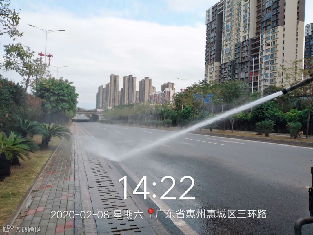 2、加大城区道路、人行道及高速出入口冲洗力度,增加重点道路冲洗频次,确保道路冲洗到位,洒水车添加消毒剂对城区道路进行消杀;
