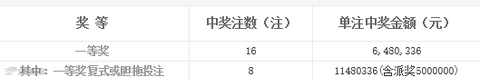 单注奖金为1148万多元(含派奖500万元)