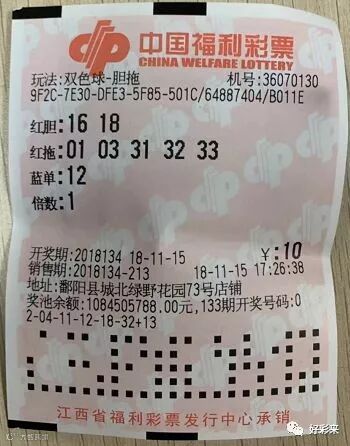11月15日晚,中国福利彩票双色球游戏进行第2018134期开奖,这是2018年双色球10亿元大派奖活动启动后的第十二期派奖。当期双色球红球号码为03、16、18、31、32、33,蓝球号码为12。