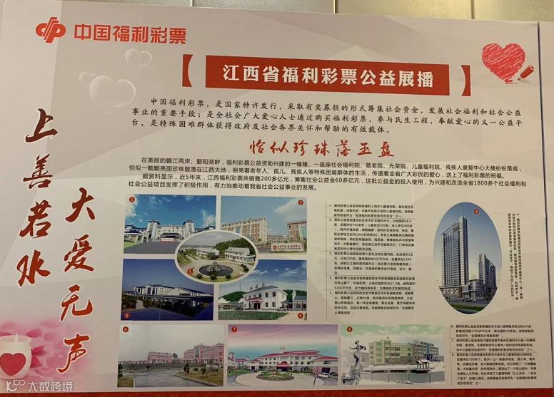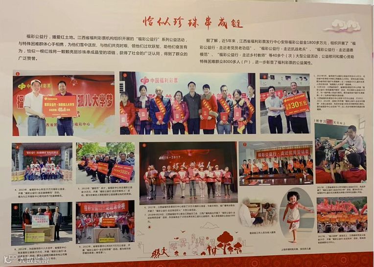主要以图片形式,展示江西省福利彩票为全省社会福利和社会公益事业发展所作出的积极贡献,进一步彰显了福利彩票“扶老、助残、救孤、济困”的发行宗旨。