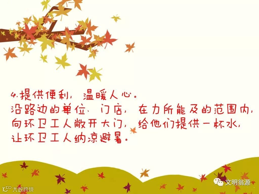 为力所能及地为辛劳的环卫工人送上一份关爱,在此呼吁大家: