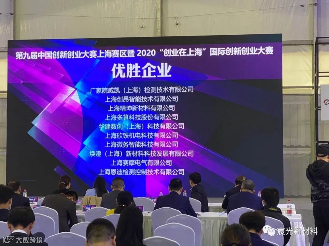宸光公司旗下企业, 焕澄新材料受邀参加创业论坛 2020“创业在上海”国际创新创业大赛颁奖仪式,获得国际创新创业大赛上海赛区优胜企业荣誉。