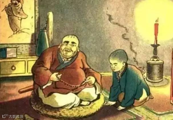 老和尚披着袈裟什么话也没有说,只是闭着眼睛静静地听着。小和尚絮絮叨叨地说着,最后老和尚睁开眼睛问道:“这北风吹得紧,外边又冰天雪地的,你冷不冷呀?”