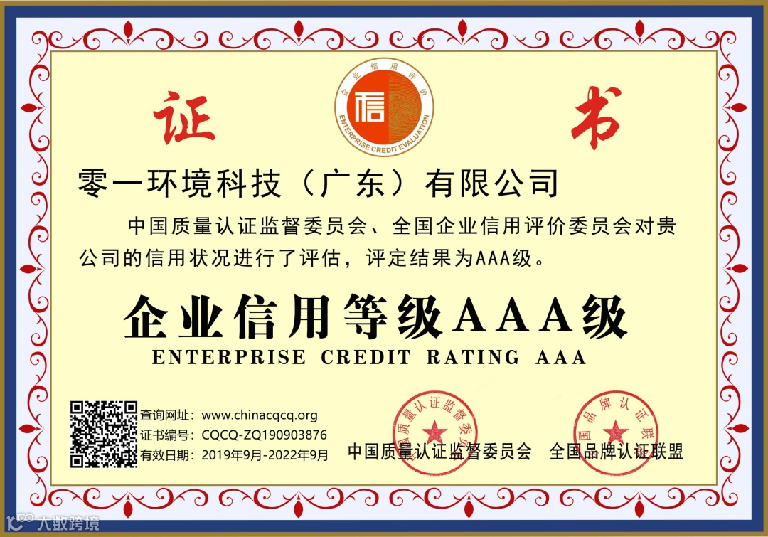 “企业信用评价AAA级企业”: