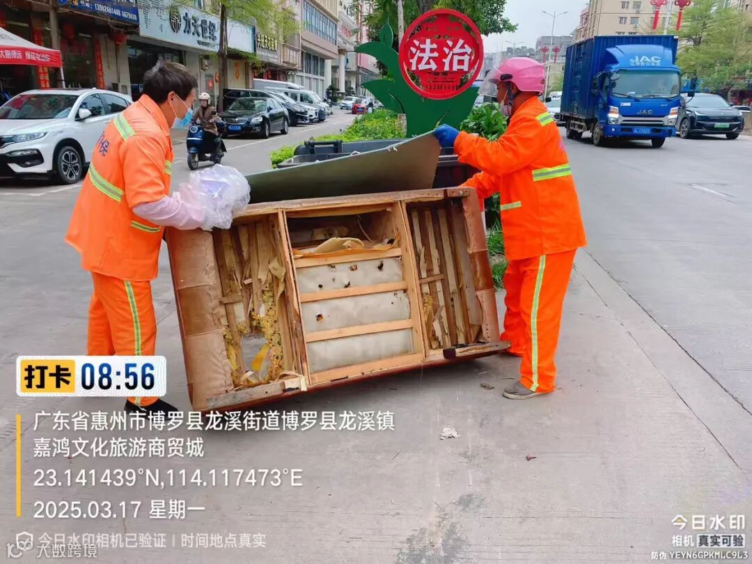 3、注意及时清掏果皮箱,做好果皮箱、垃圾桶点周边常态化保洁。