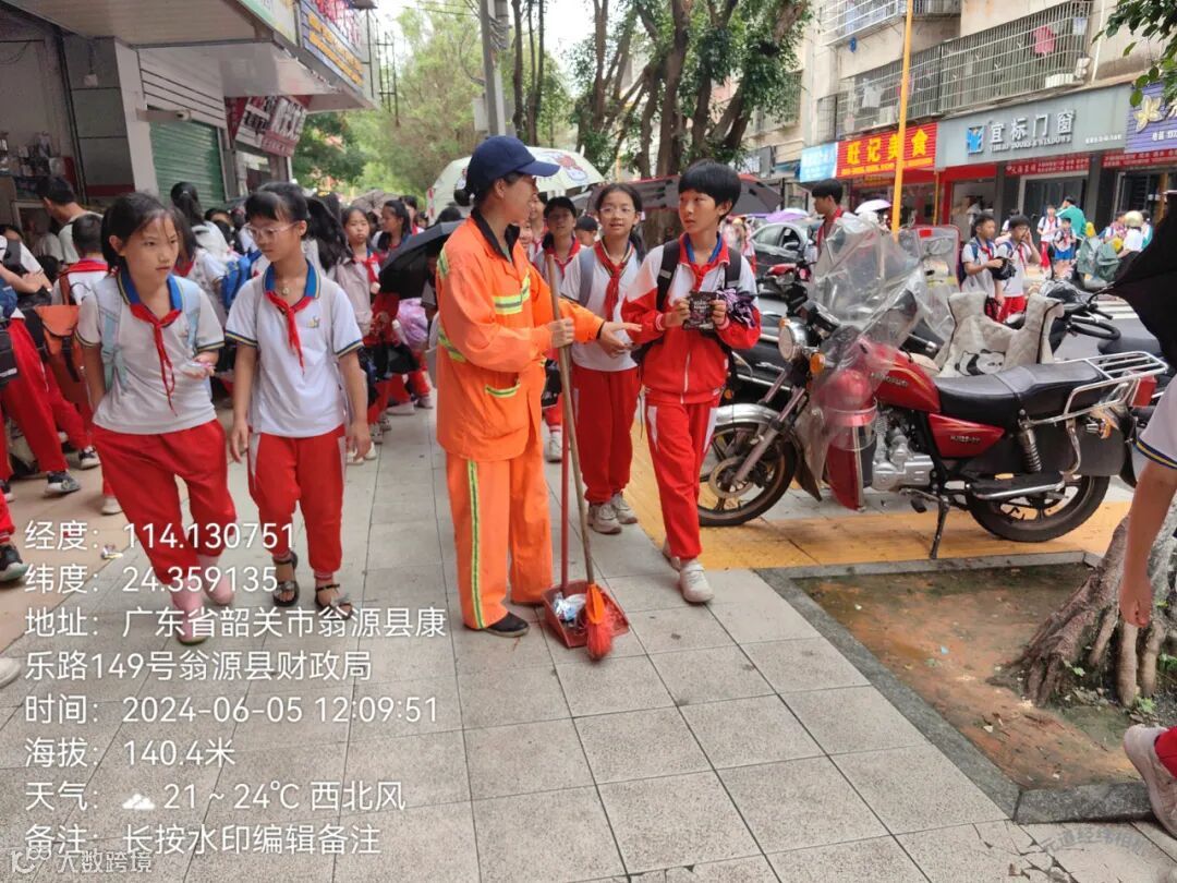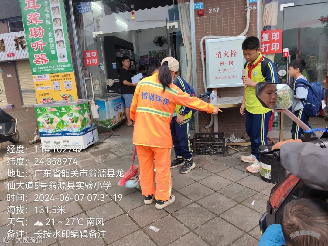 在小学周边劝导学生上下学途中垃圾不落地宣传工作