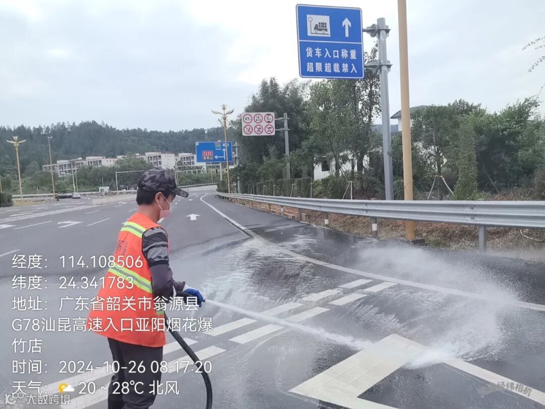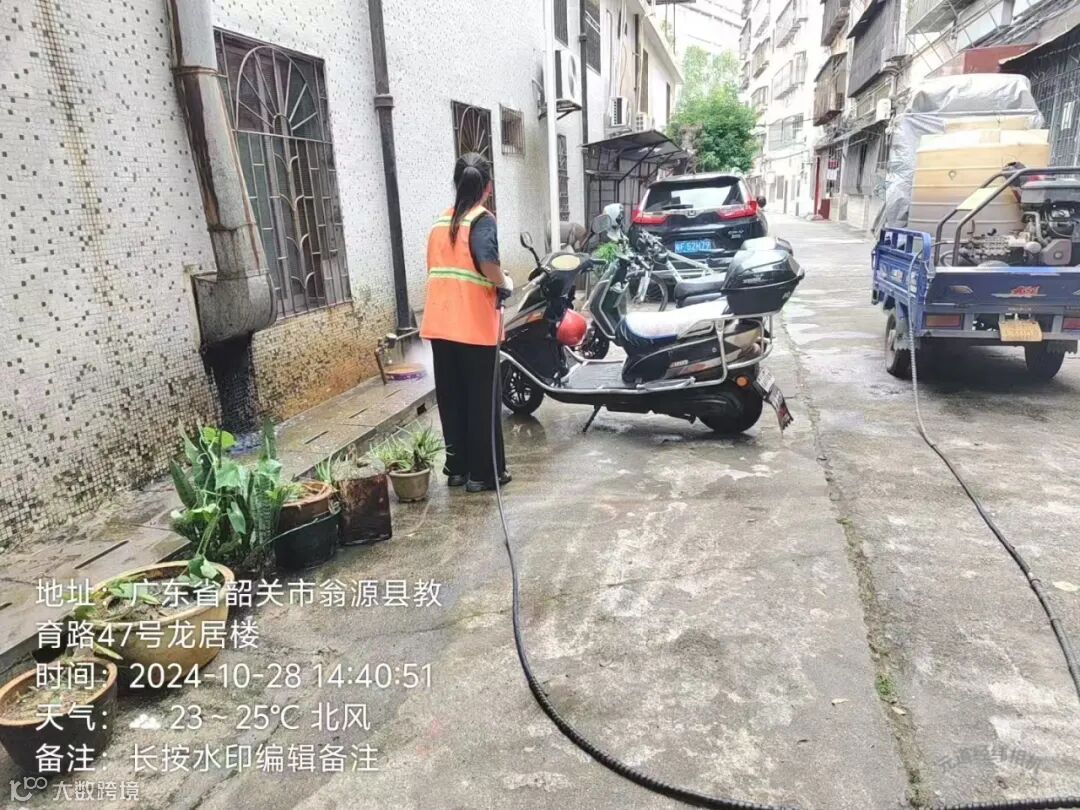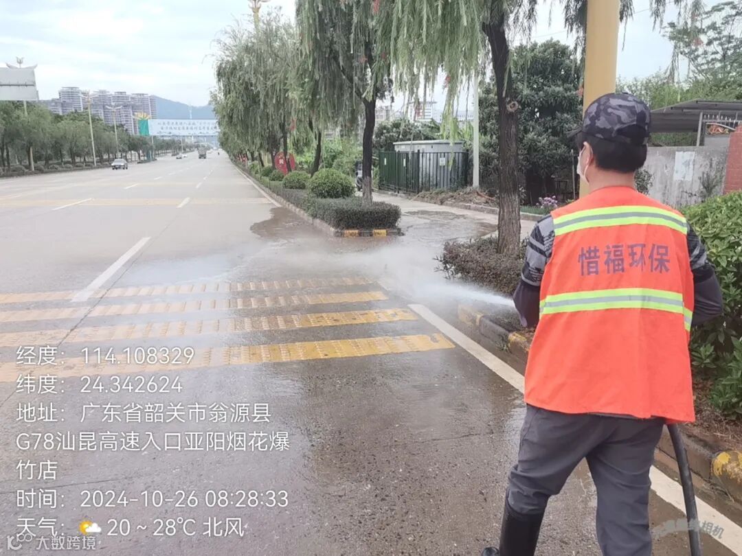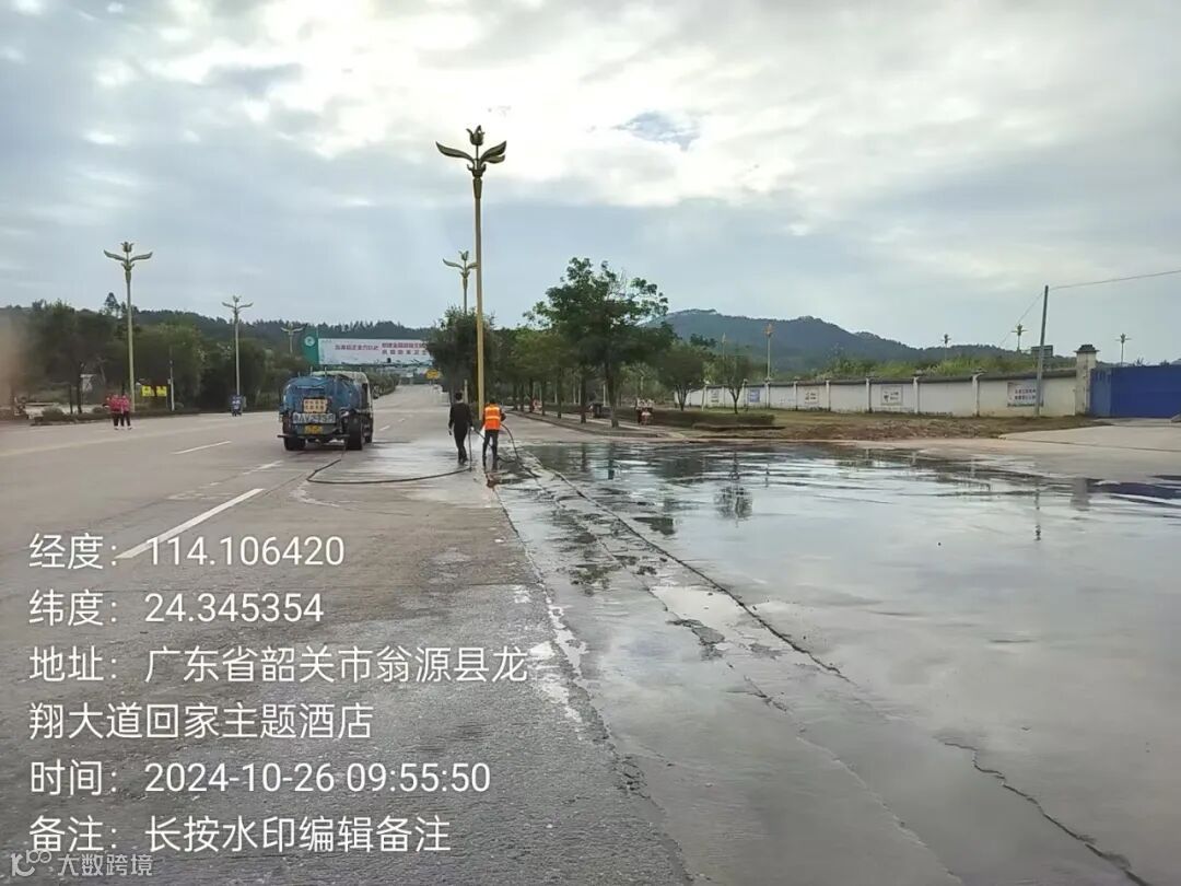 3、继续加派人手,大水车,高压冲洗车,清理清洗龙仙东西2个出口保障现场会周边环境卫生。