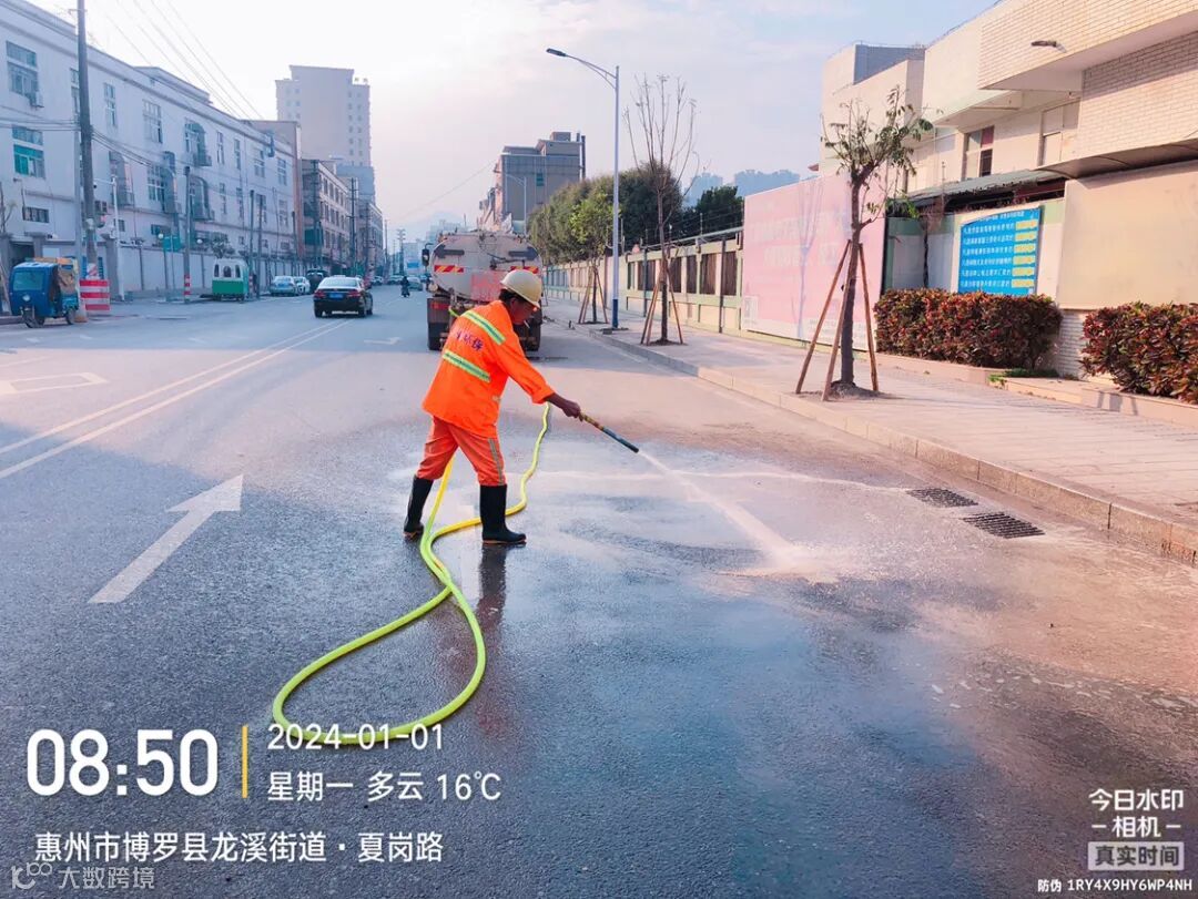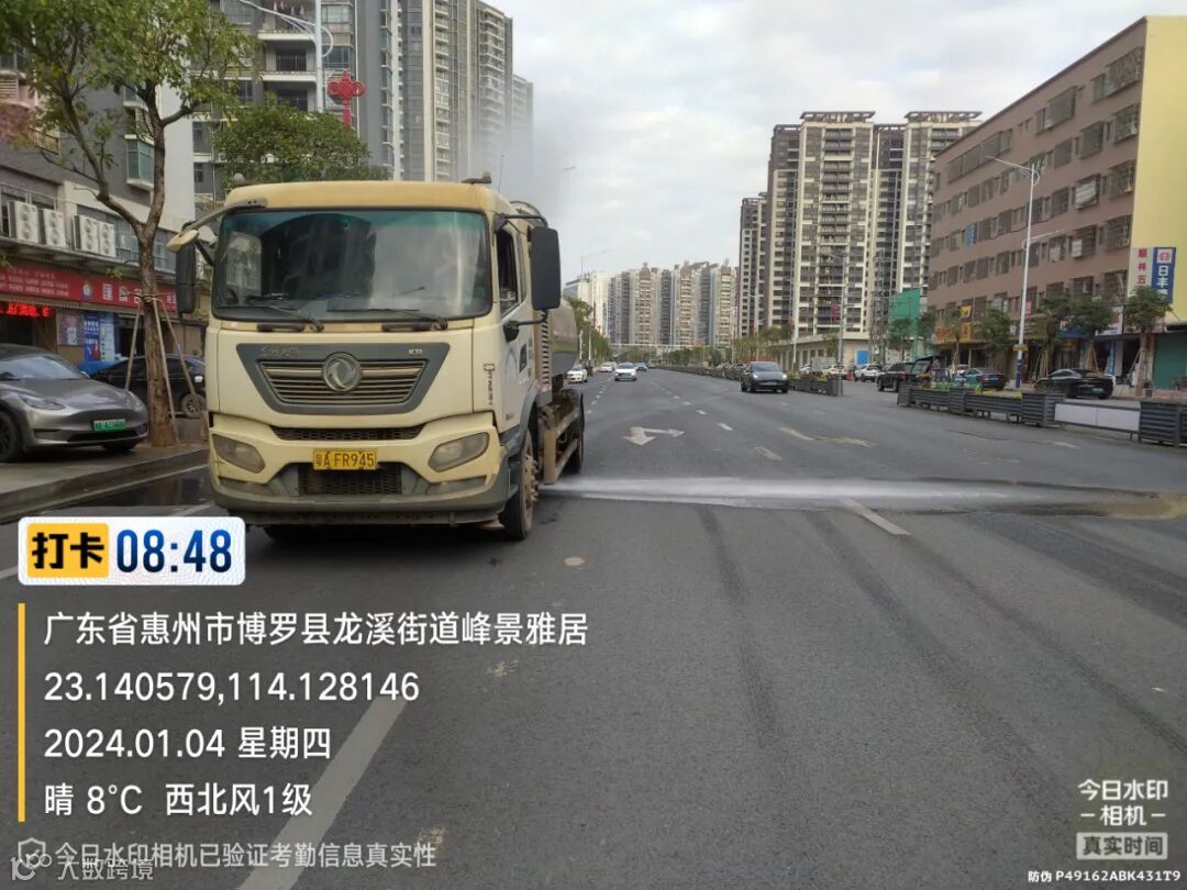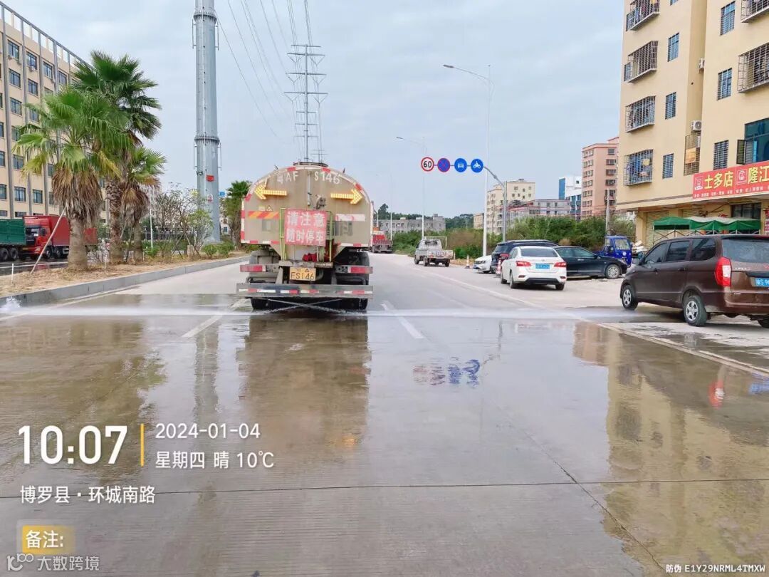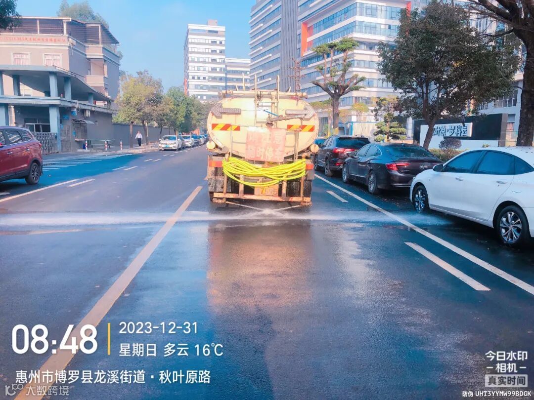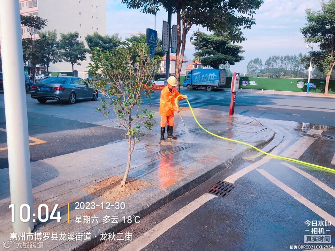 3、加强冲洗街道中心区主干道路、人行道、桶点、果皮箱及护栏、广告牌等公共设施。
