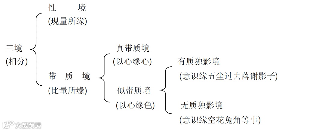 (1)有质独影境以五尘落谢在阿赖耶识的影子为依托,属于比量,如幻想过去未来。